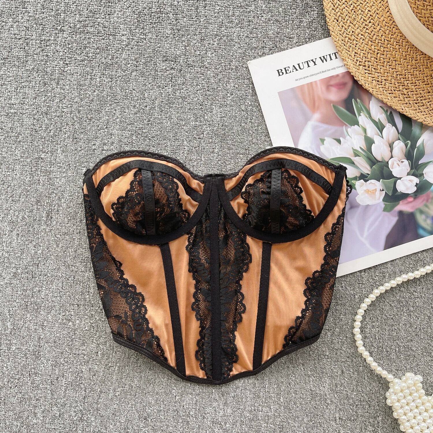 フレンチスタイル純粋な欲望スタイルチューブトップレースステッチサテンベスト女性痩身ショートノースリーブフィッシュボーントップトレンディな 半袖 ハーフスリーブ ピュア lyxaj39522395900