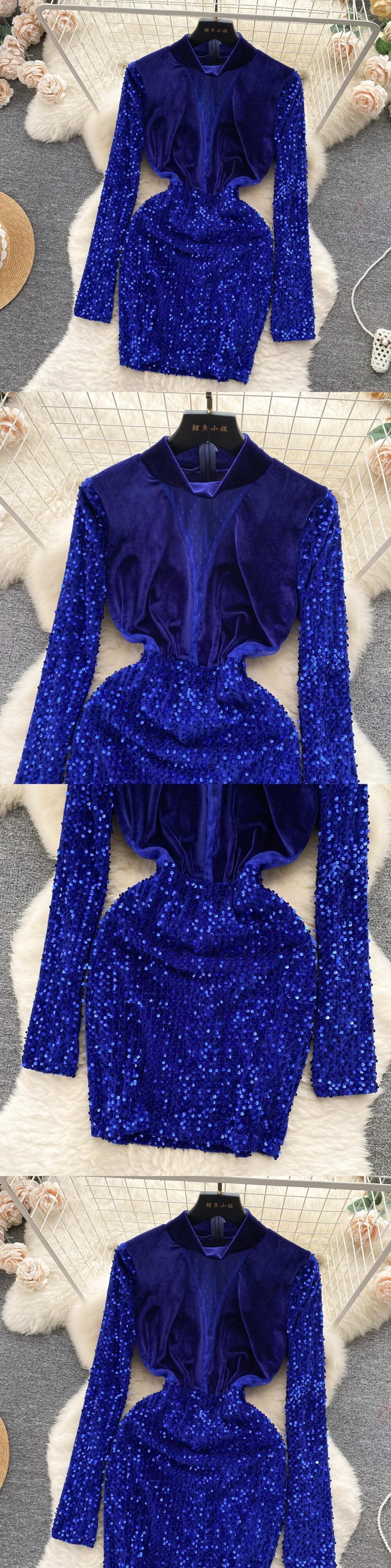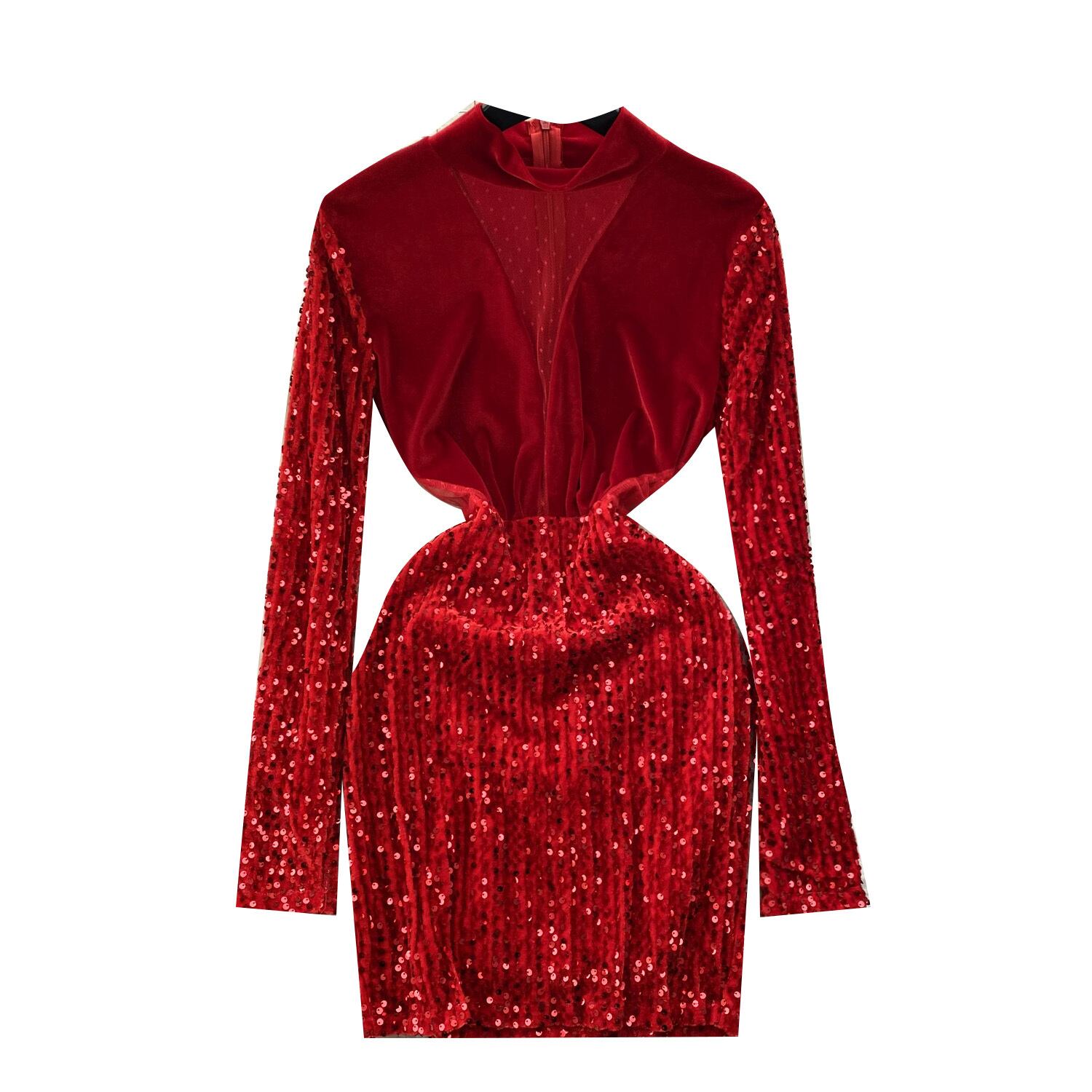 ヨーロッパとアメリカのスタイルのシースルーメッシュスプライシングスパンコールドレス、フェミニンな痩身と痩身気質のヒップハグドレスパーティードレス ヨーロピアン lyxaj1239886670