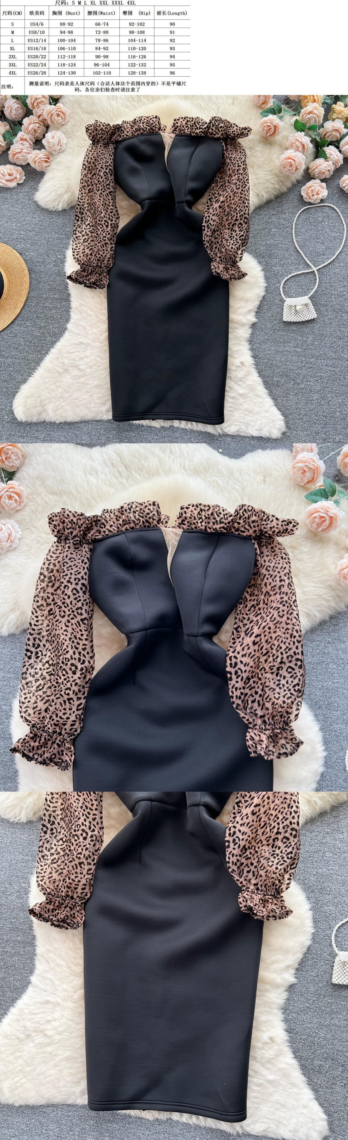 レディスタイルのハイエンドディナードレス女性ニッチライト高級気質ワンショルダーストラップレスヒョウ柄ステッチブラックドレス lyxaj46497560058