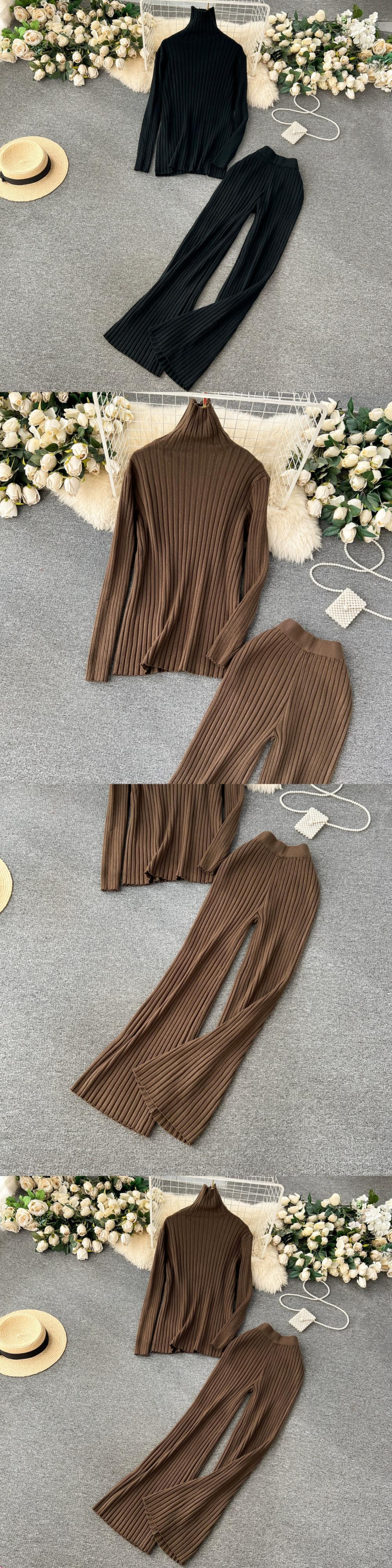 秋冬怠惰なスタイルのセーター少し太った痩身スーツ女性シンプルな無地気質ワイドレッグパンツ今年人気の 2 点セット オータム 秋物 ウィンター 冬物 ワイドパンツ ソリッドカラー lyxaj52770087810