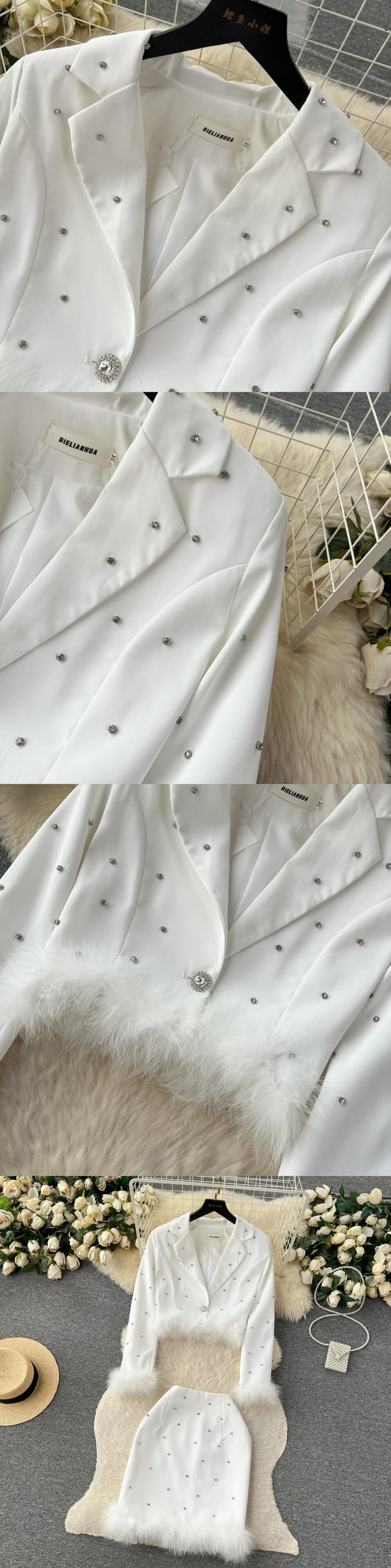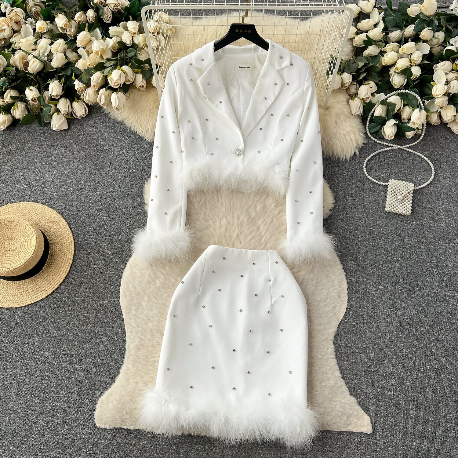 セレブ女性の高級スーツ軽い高級重工業ダイヤモンドショートジャケットデザイン毛皮のスカート 2 点セット女性 lyxaj84084253505