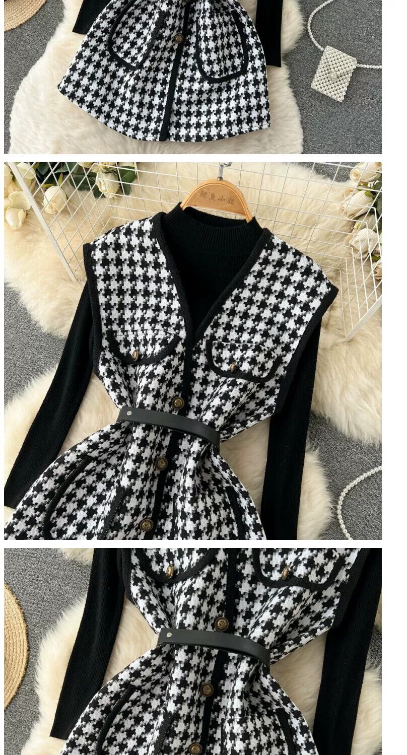Xiaoxiangfeng 秋のツーピーススーツの女性、高級千鳥格子ベストジャケット、スリム長袖セータートップ、トレンディ ロング オータム 秋物 lyxaj52856165009