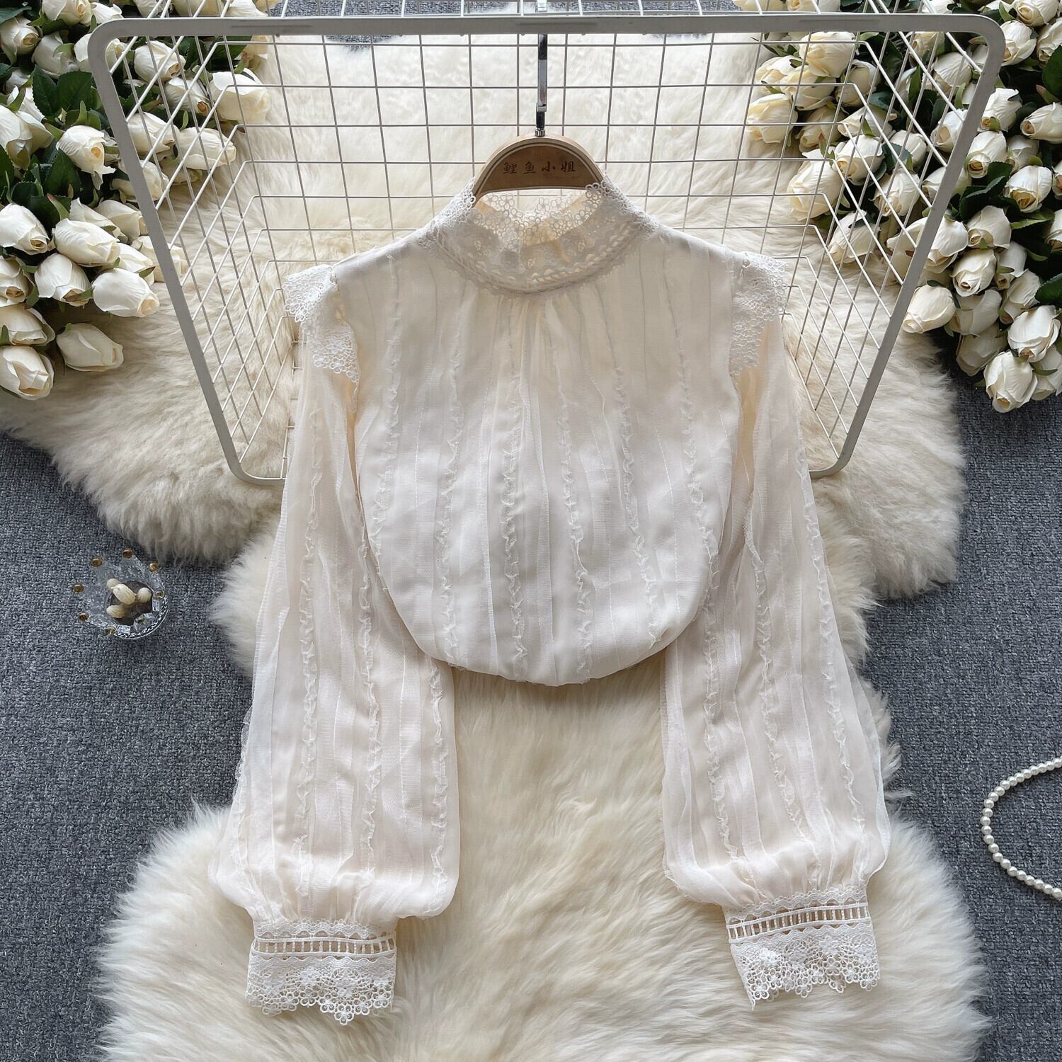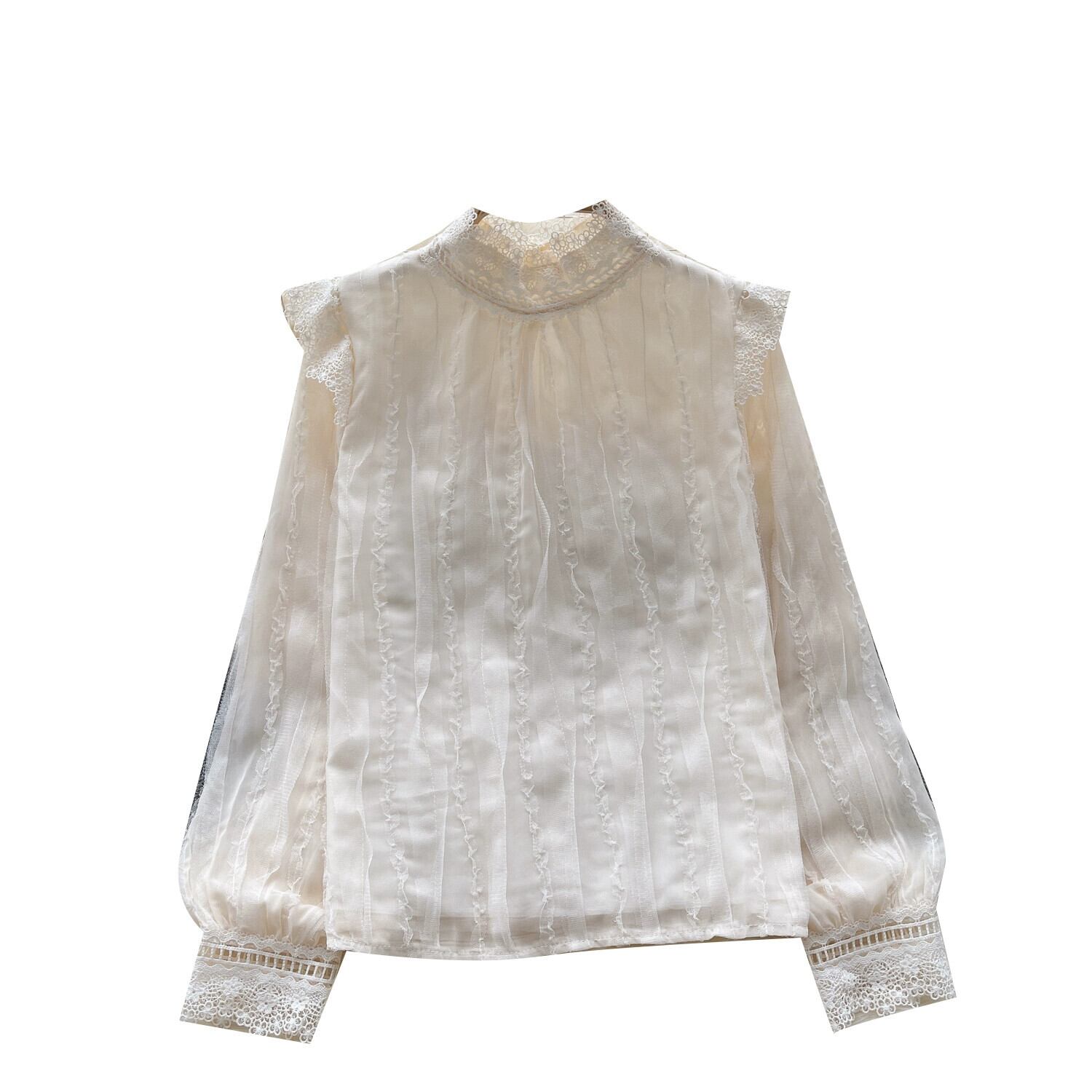 フランスのレトロな宮殿スタイルの長袖シャツの女性の秋と冬のレースデザインニッチシックな軽い高級気質トップ ロング オータム 秋物 ウィンター 冬物 lyxaj65956135141
