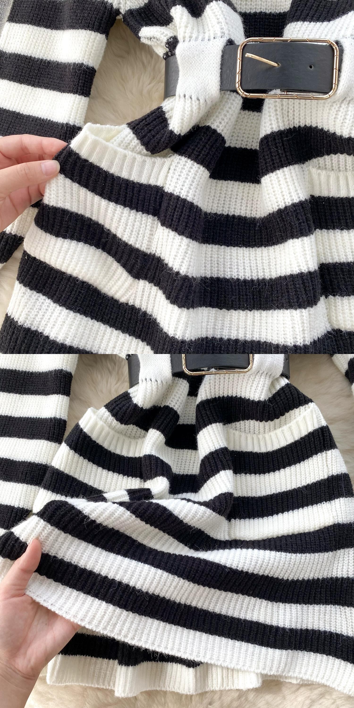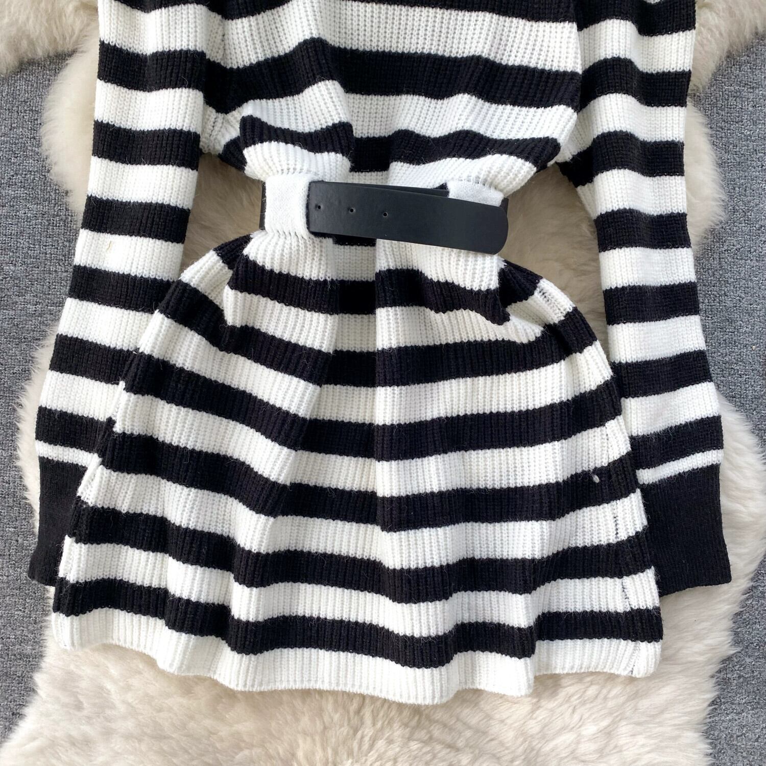 ストライプニットドレス女性 2023 スタイルインナーセータースカートデザインウエスト痩身ファッショナブルなスタイルのショートスカート lyxaj7095250779