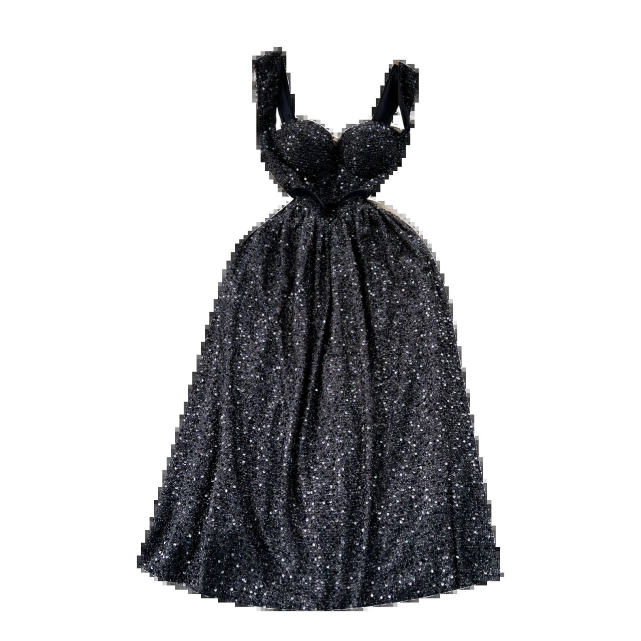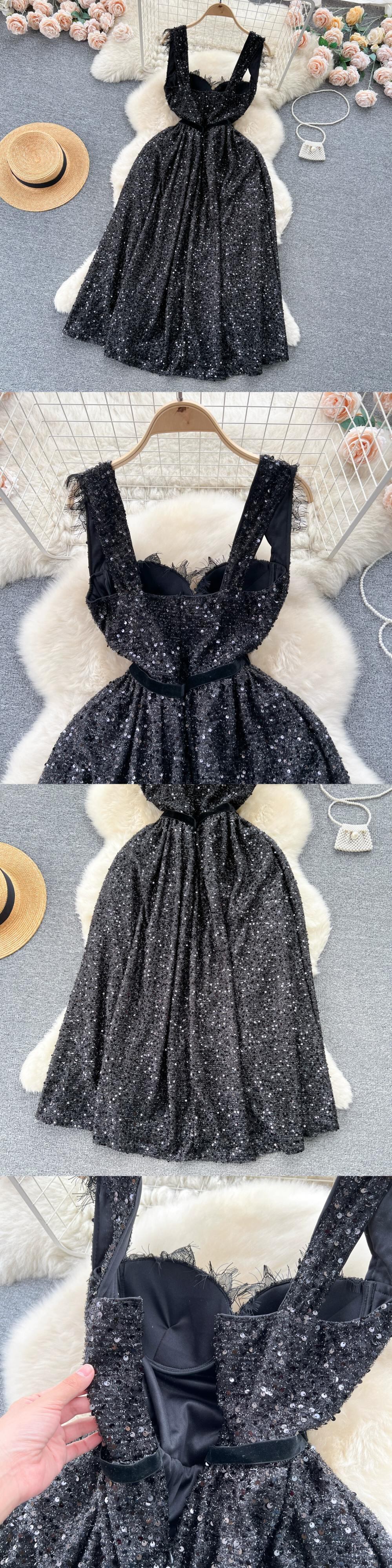 黒の小さなドレス誕生日パーティーパーティースパンコールスカートフレンチヘップバーンスタイルストラップレスプリンセスドレス ブラック lyxaj81621496586