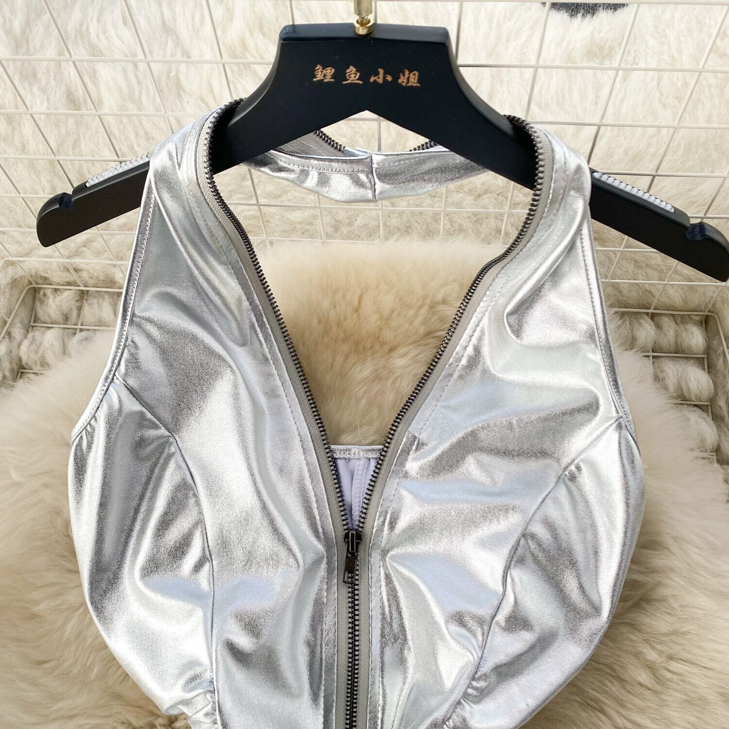 セクシーなホルターネックジッパー光沢のあるレザードレス純粋な欲望ネクタイプリーツスリムフィットヒップハグバックレスショートスカート ピュア lyxaj82334548145