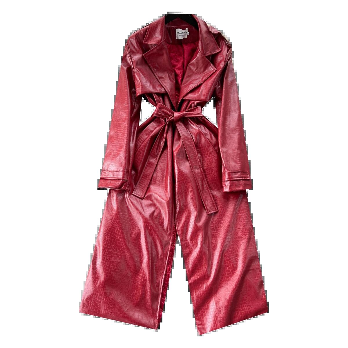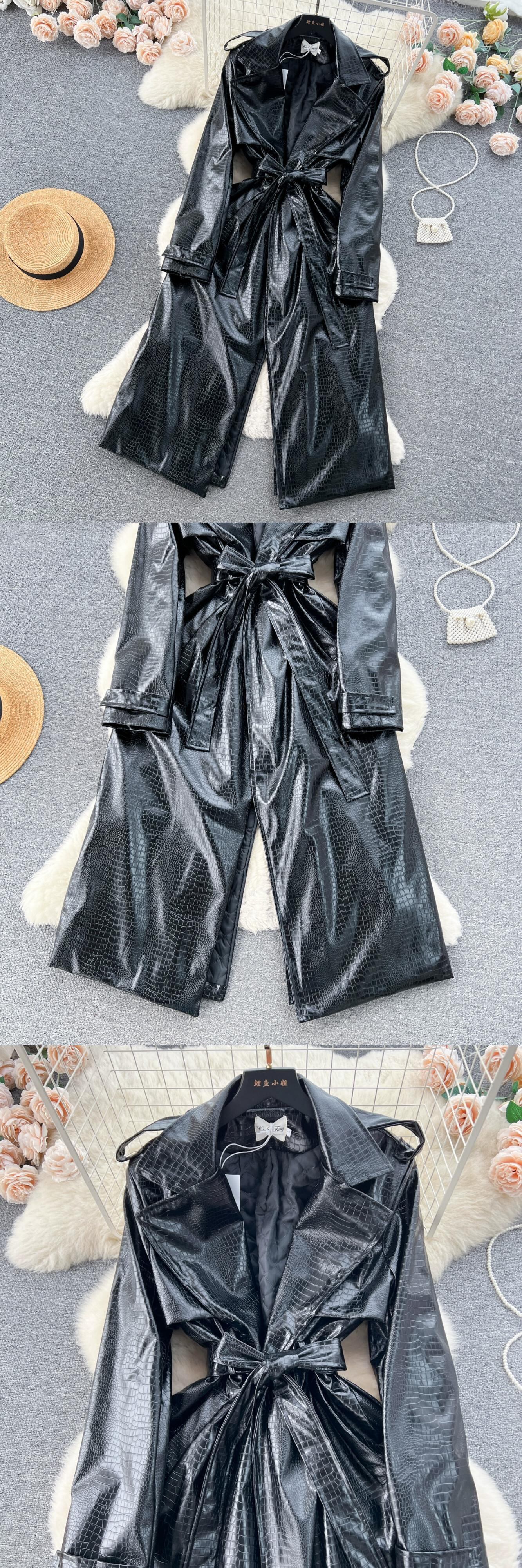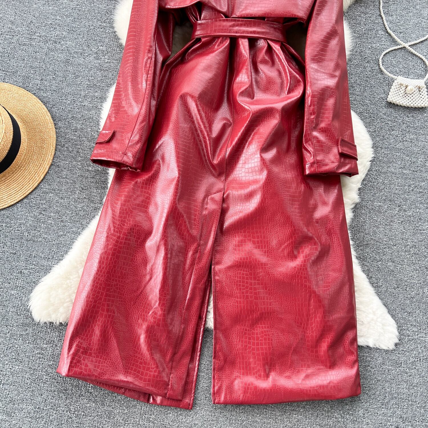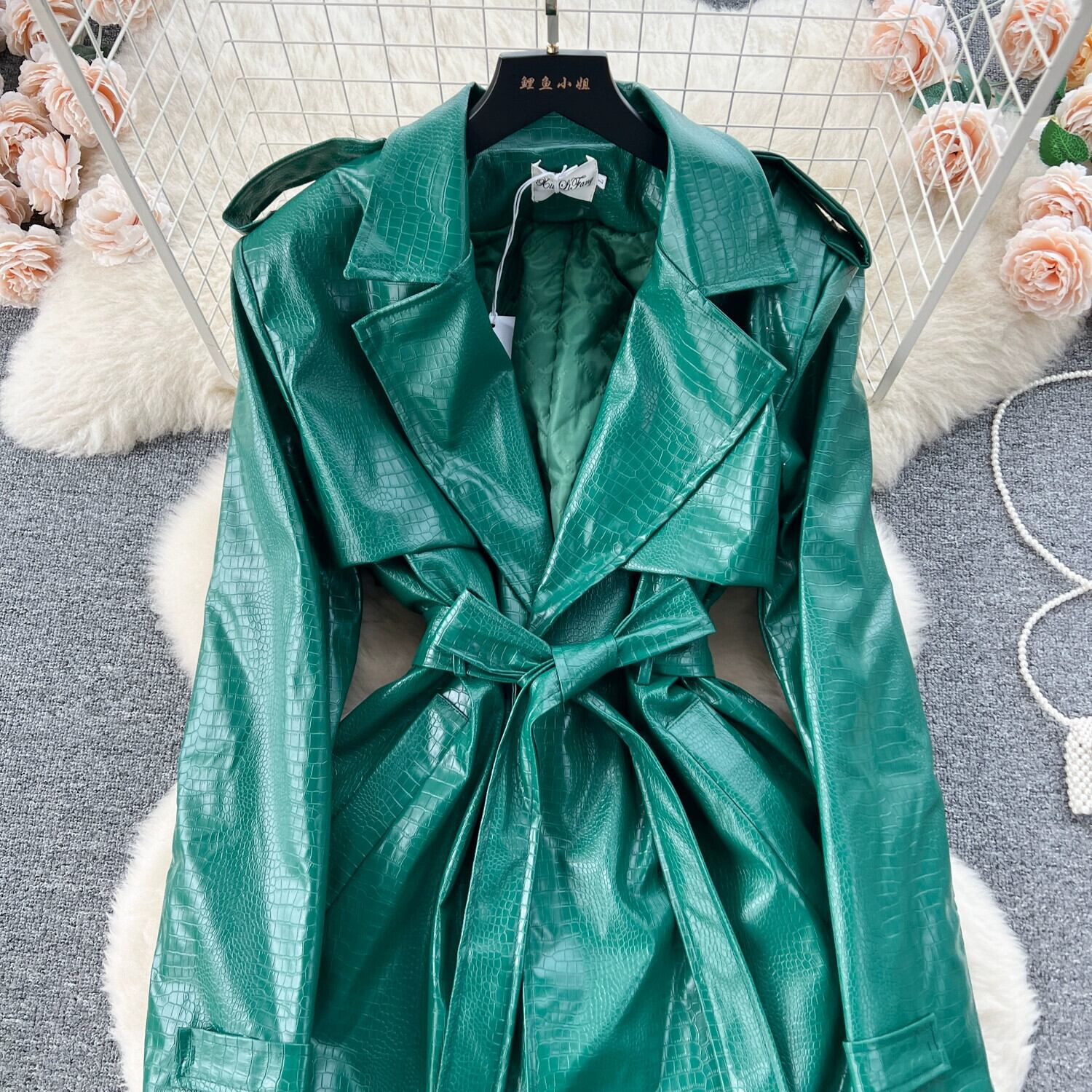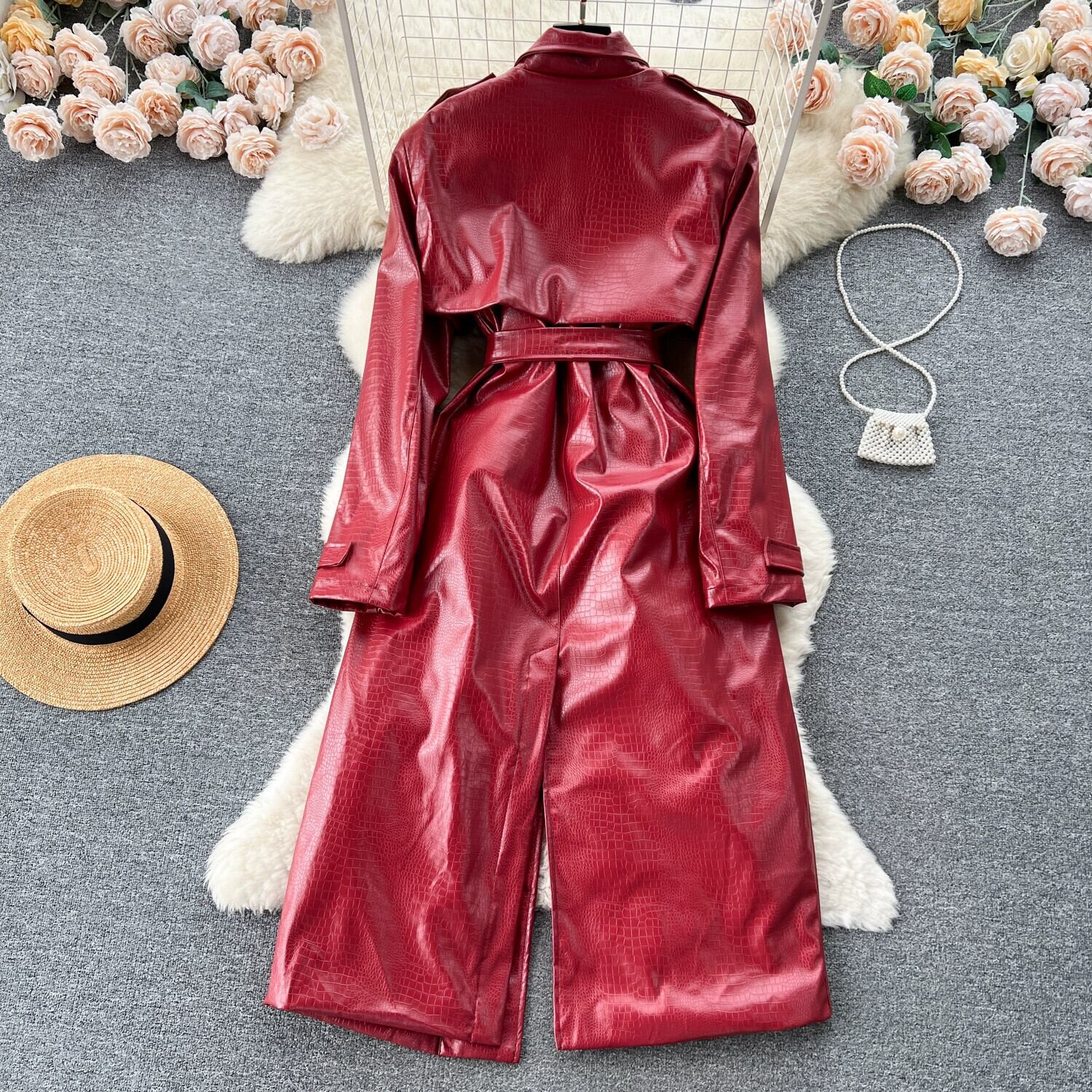秋冬のレトロな英国スタイルのミッドレングスPUレザージャケットの女性、クールでスタイリッシュ、ハイエンドのウエストマントコート、トレンディな オータム 秋物 ウィンター 冬物 lyxaj42879493946