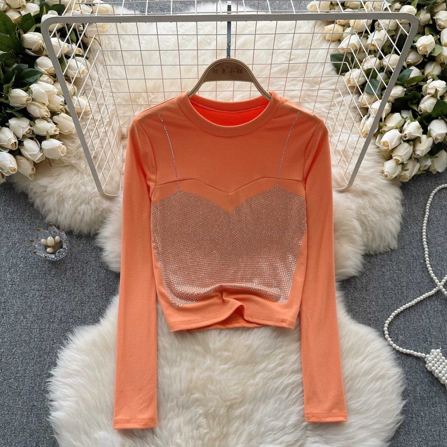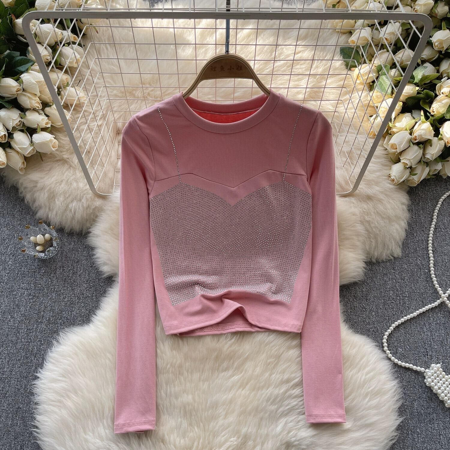 有能ダイヤモンド長袖 Tシャツ女性 2023 秋と冬の新しい純粋な欲望ボトリングシャツ弾性スリムショートトップ ロング エラスティック 伸縮 オータム 秋物 ウィンター 冬物 ピュア lyxaj91610294185