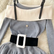 甘いネクタイオフショルダーサスペンダードレス女性ニッチシックなデザインワンショルダー長袖ウエストニットスカートショートスカート ロング 大人ガーリー スウィート キュート カジュアル lyxaj44163327690