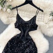 セレブドレス、ハイエンド、ライトラグジュアリー、ニッチ、陰謀、背中の開いた、スリム、スパンコールの付いたロングドレス、セクシーなサスペンダースカート lyxaj11542698949