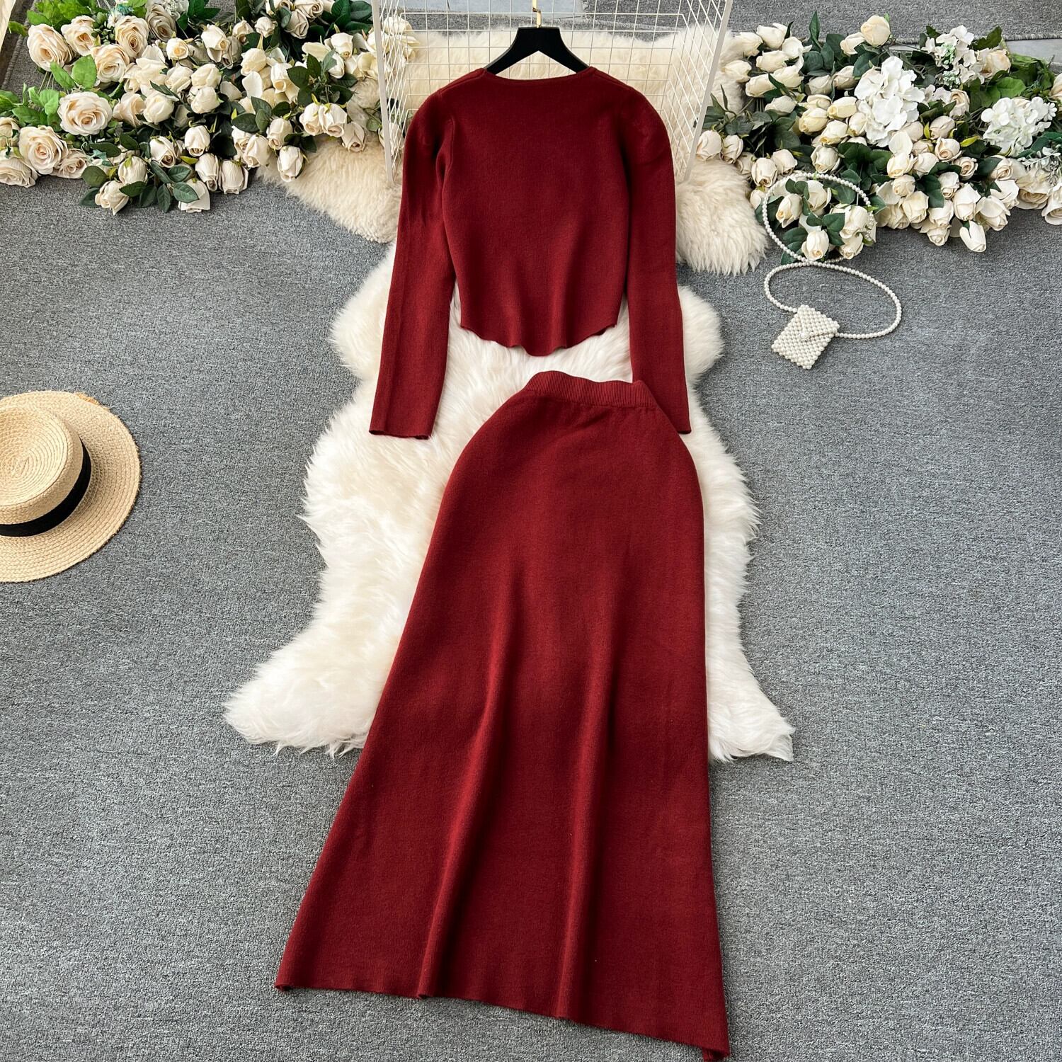 社交家スタイルの高級ニットセーターレディース、ファッショナブルで多用途なセーター+ハイウエストスリムスカート秋冬2点セット オータム 秋物 ウィンター 冬物 lyxaj15768998393