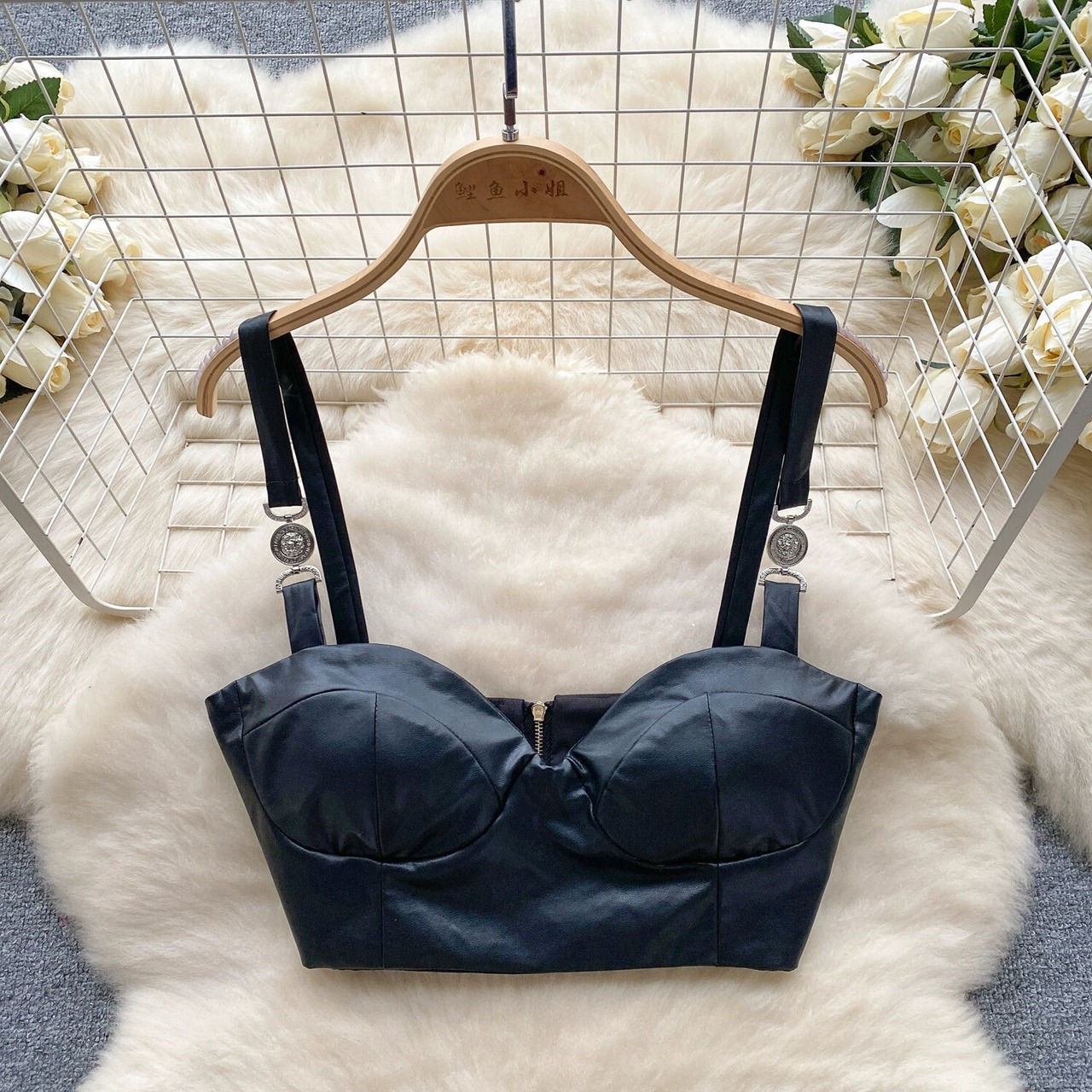 ドーパミン純粋な欲望ホットガールスタイル PU レザーストラップチューブトップ + ウエスト痩身ヒップショートスカートスーツ ピュア lyxaj4000980033