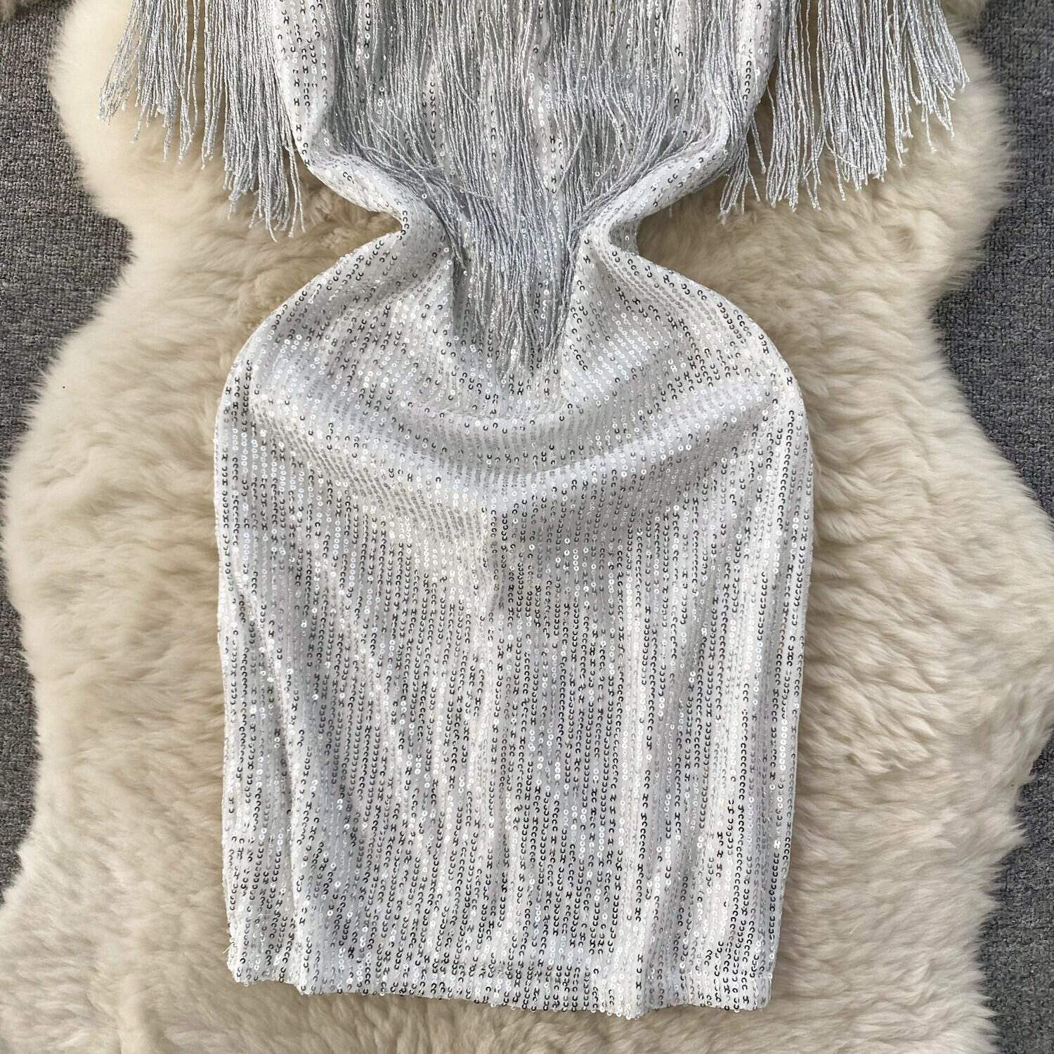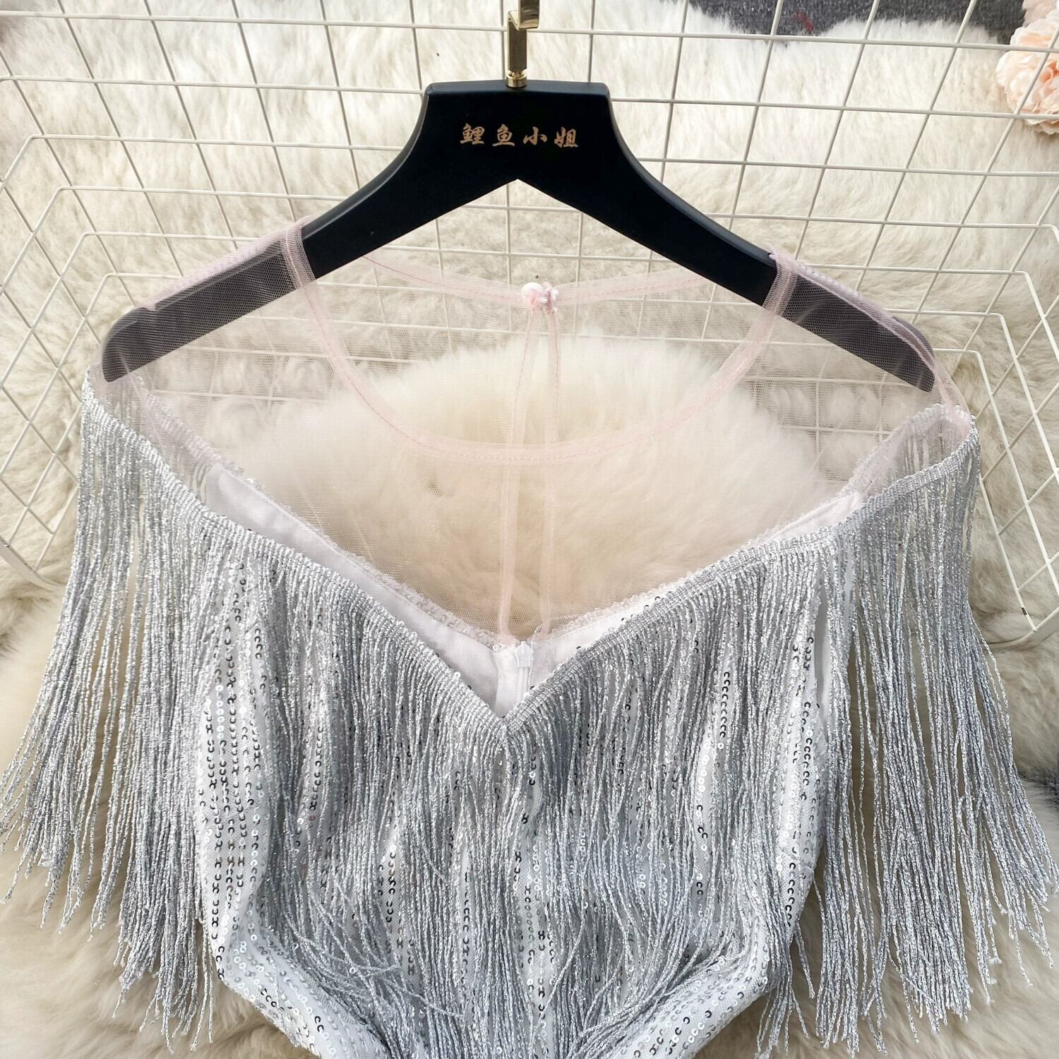 - セレブスタイルのバースデードレス、フェミニンなシースルーメッシュスプライシングスパンコールヒップカバーテルドレストレンディ lyxaj36891672735