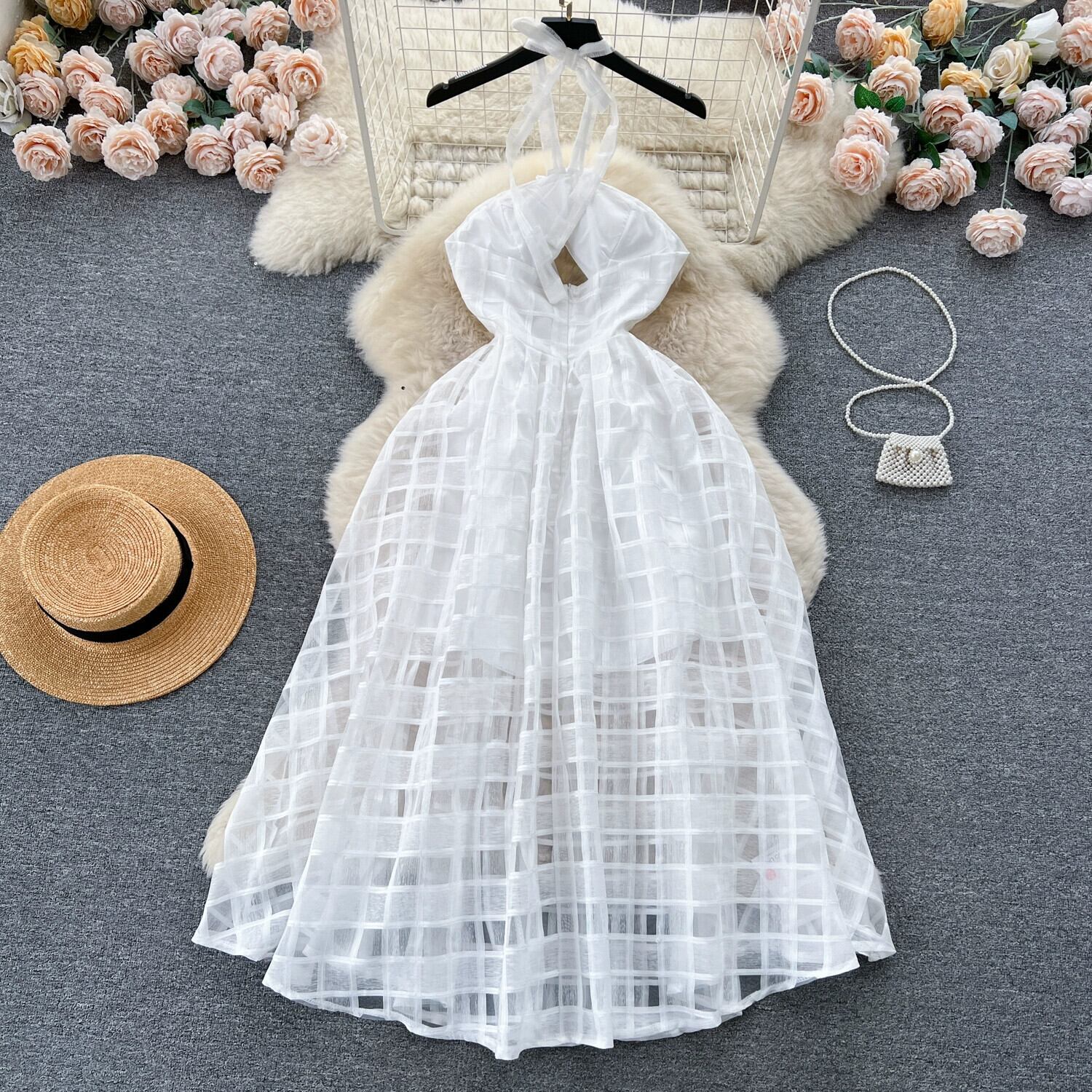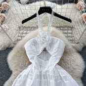 フレンチホルターネックバックレスドレス女性、純粋な欲望、立体的な花、中空チューブトップ、ウエスト、気質ホリデースカート、インロングスカート ピュア フラワーデザイン lyxaj92089740501
