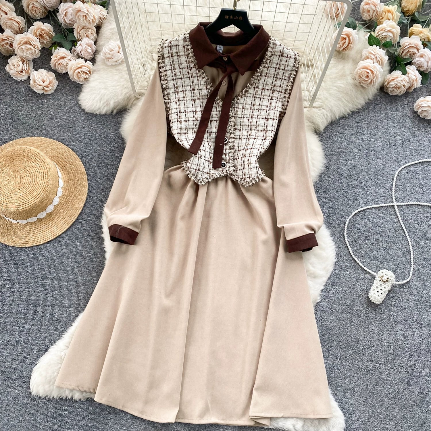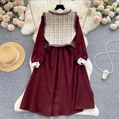 スタイル年齢を軽減するカレッジスタイルのスーツの女性、秋と冬のレトロなツイードベスト+気質ドレスの2点セット オータム 秋物 ウィンター 冬物 lyxaj39684269992