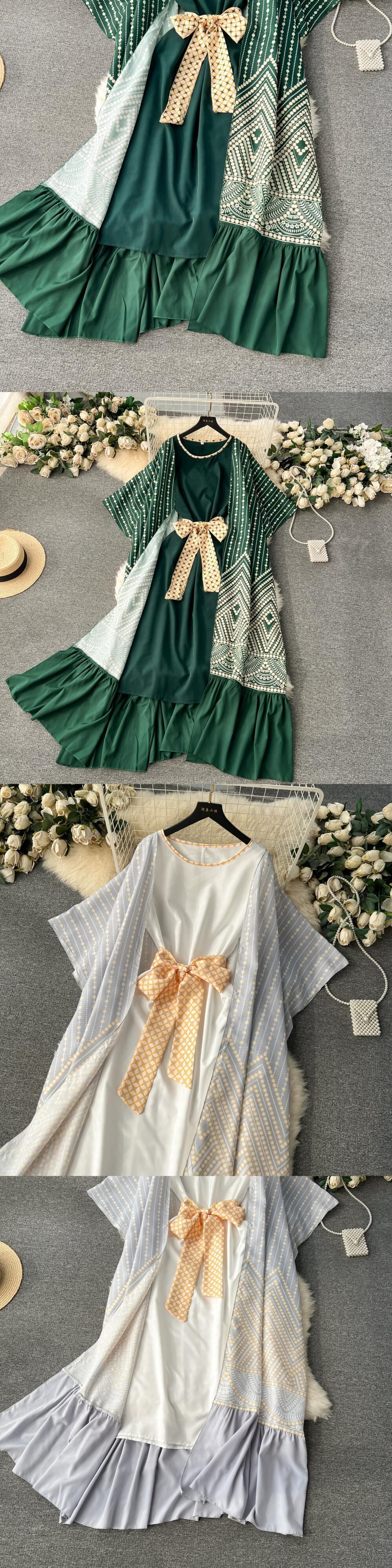 ヨーロッパとアメリカンスタイルのツーピースドレスの女性、デザイナープリントのショールジャケット、多用途のノースリーブベストドレス、エレガントなドレス ヨーロピアン lyxaj78937785492