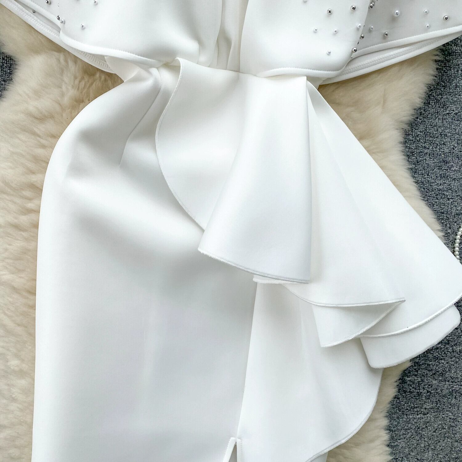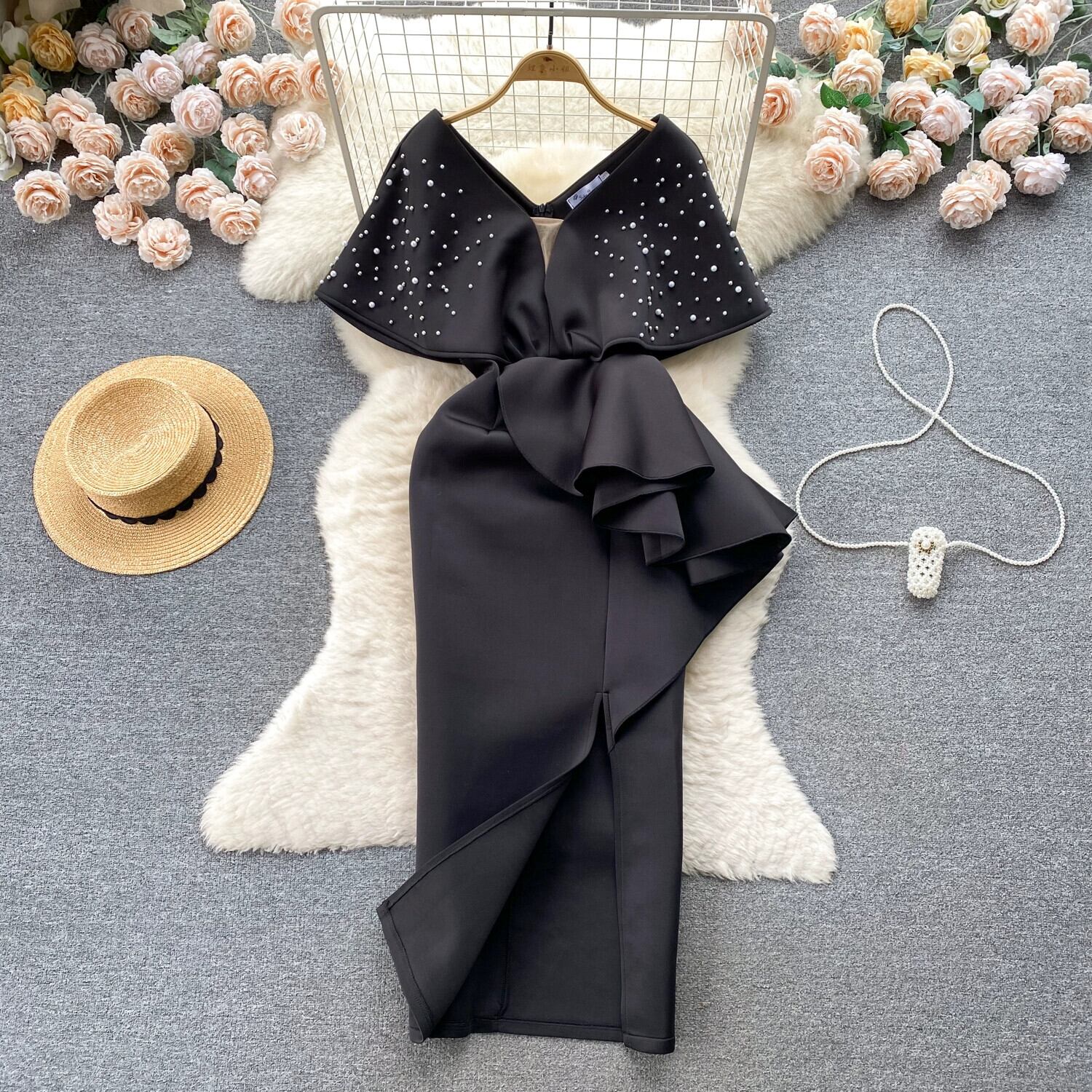 セレブドレス、ライトラグジュアリー、ハイエンドイブニングドレス、ニッチビーズVネック、フリルウエストバンド、ヒップと膝丈のスカート lyxaj1522165316