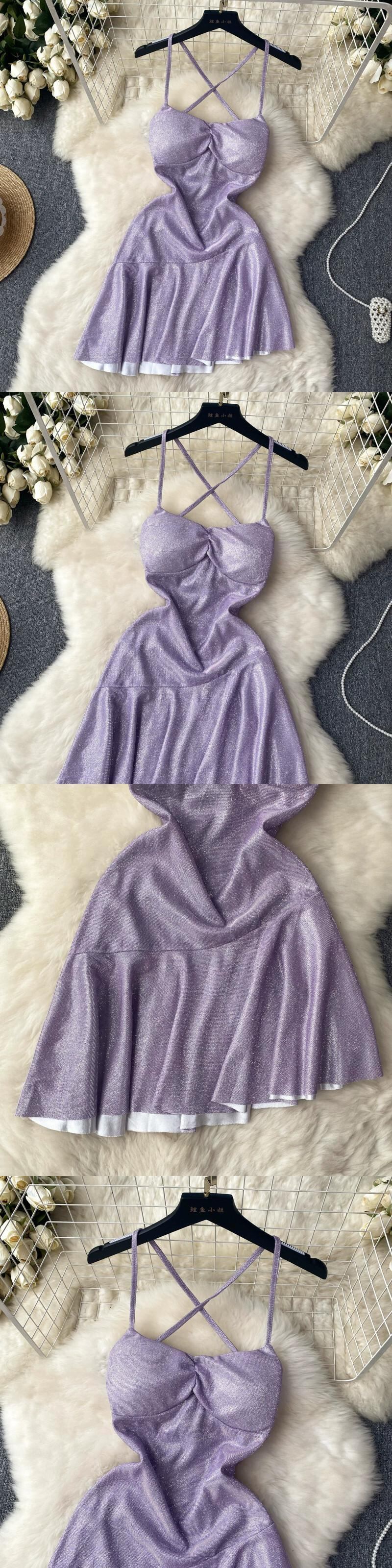 ヨーロッパとアメリカのスタイルの光沢のあるスパークリングサスペンダードレス女性の夏のセクシーな純粋な欲望バックレススリムフリルショートスカート サマー 夏物 ピュア ヨーロピアン lyxaj95013015914
