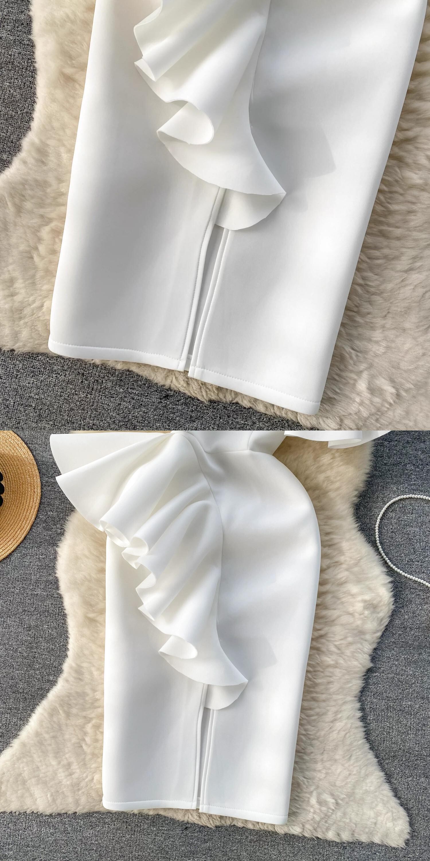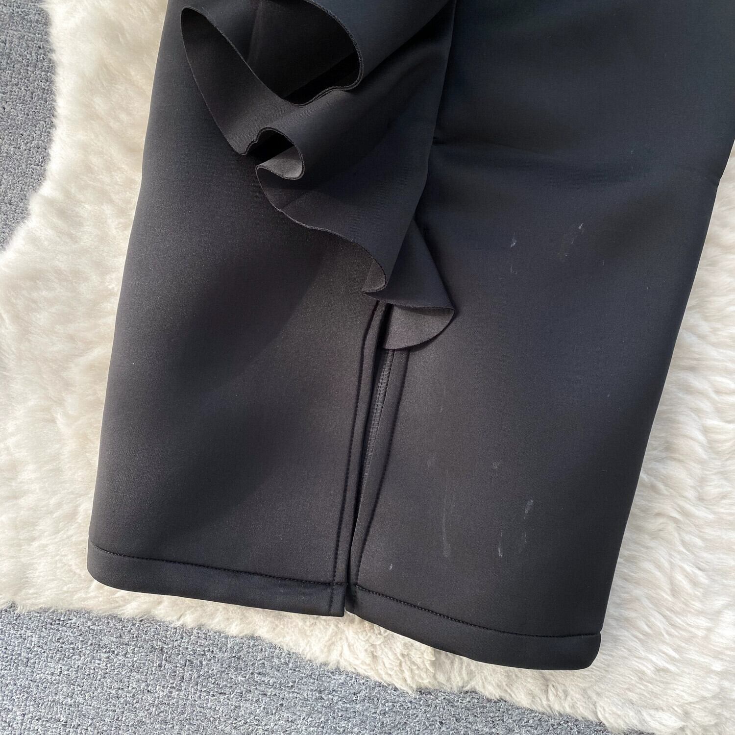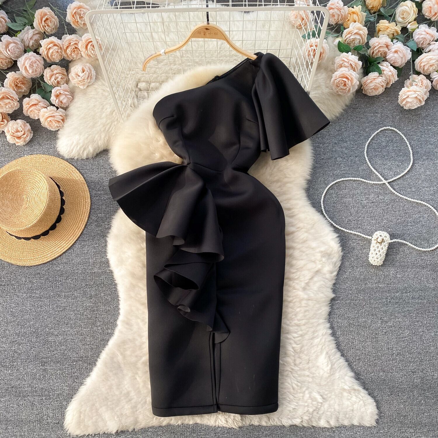 ヨーロッパとアメリカのスカート、高級イブニングドレス、セクシーな斜めの襟、オフショルダー、立体的なフリル、スリット、エレガントなドレスの女性 ラッフル ヨーロピアン lyxaj14514360542