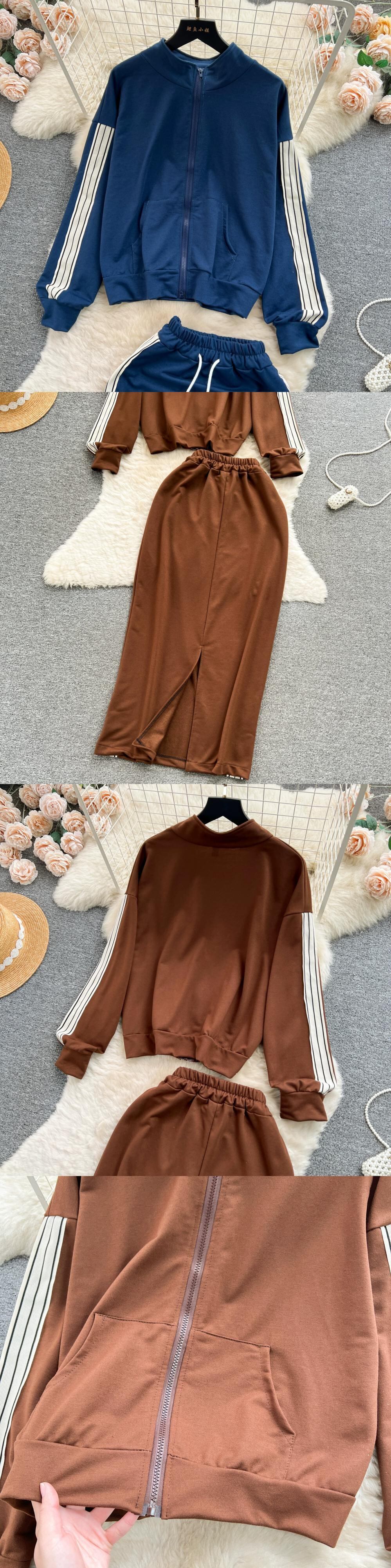 スタイルカジュアルスタイルスーツレディース、デザイナージッパーカーディガンジャケット、多用途ハーフスカート、ファッショナブルなツーピーススカートスーツ lyxaj30218303653