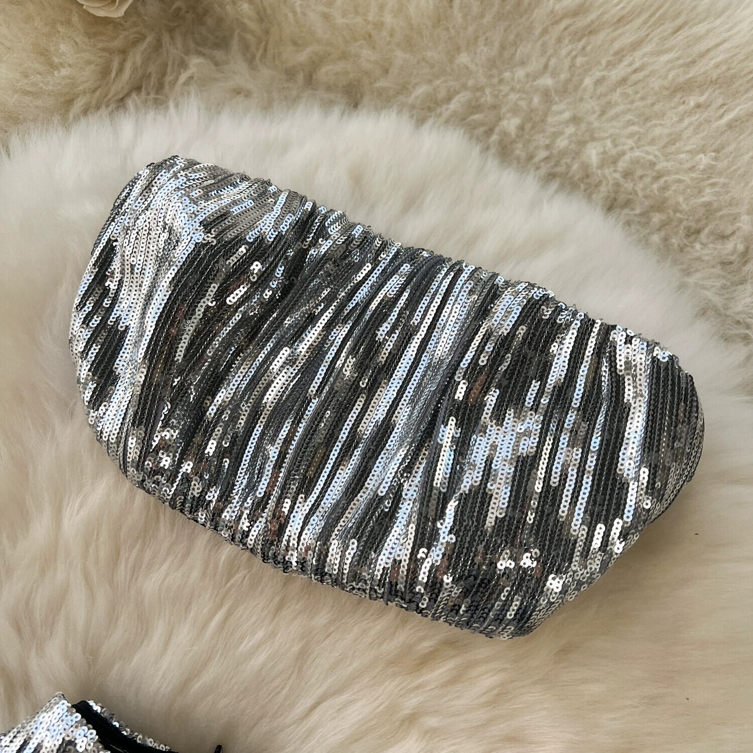 セレブ 高級スーツ ライト 高級 スパンコール チューブトップ ショート セクシー ハイスリット フリル スカート 休暇 2点セット lyxaj76527169094