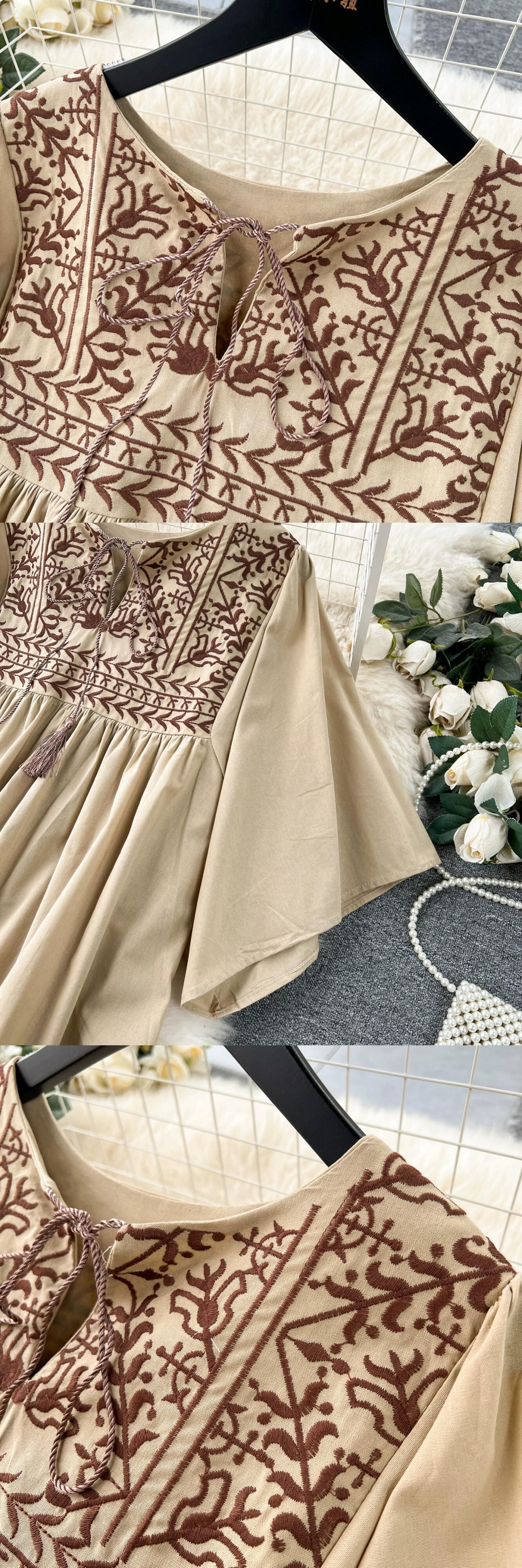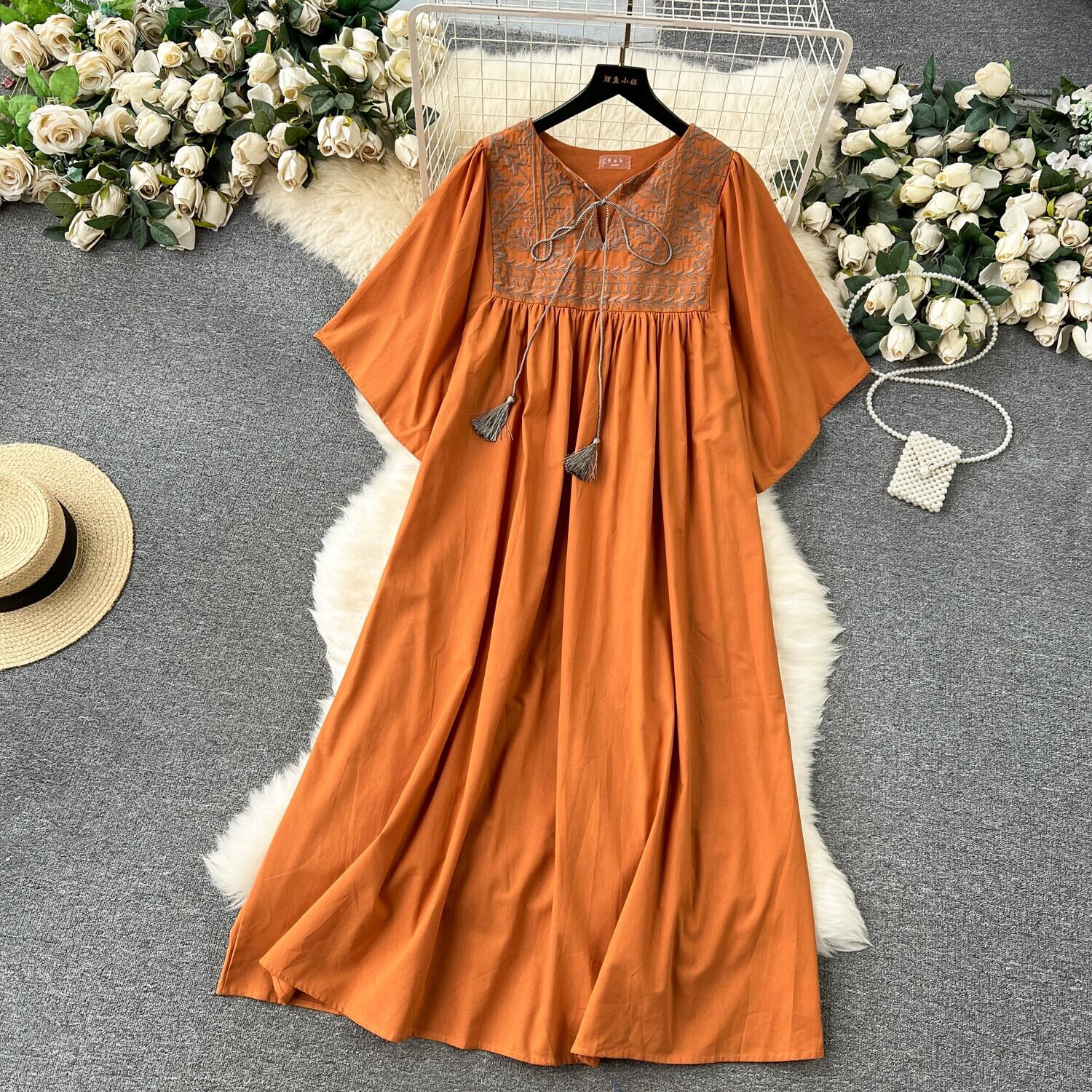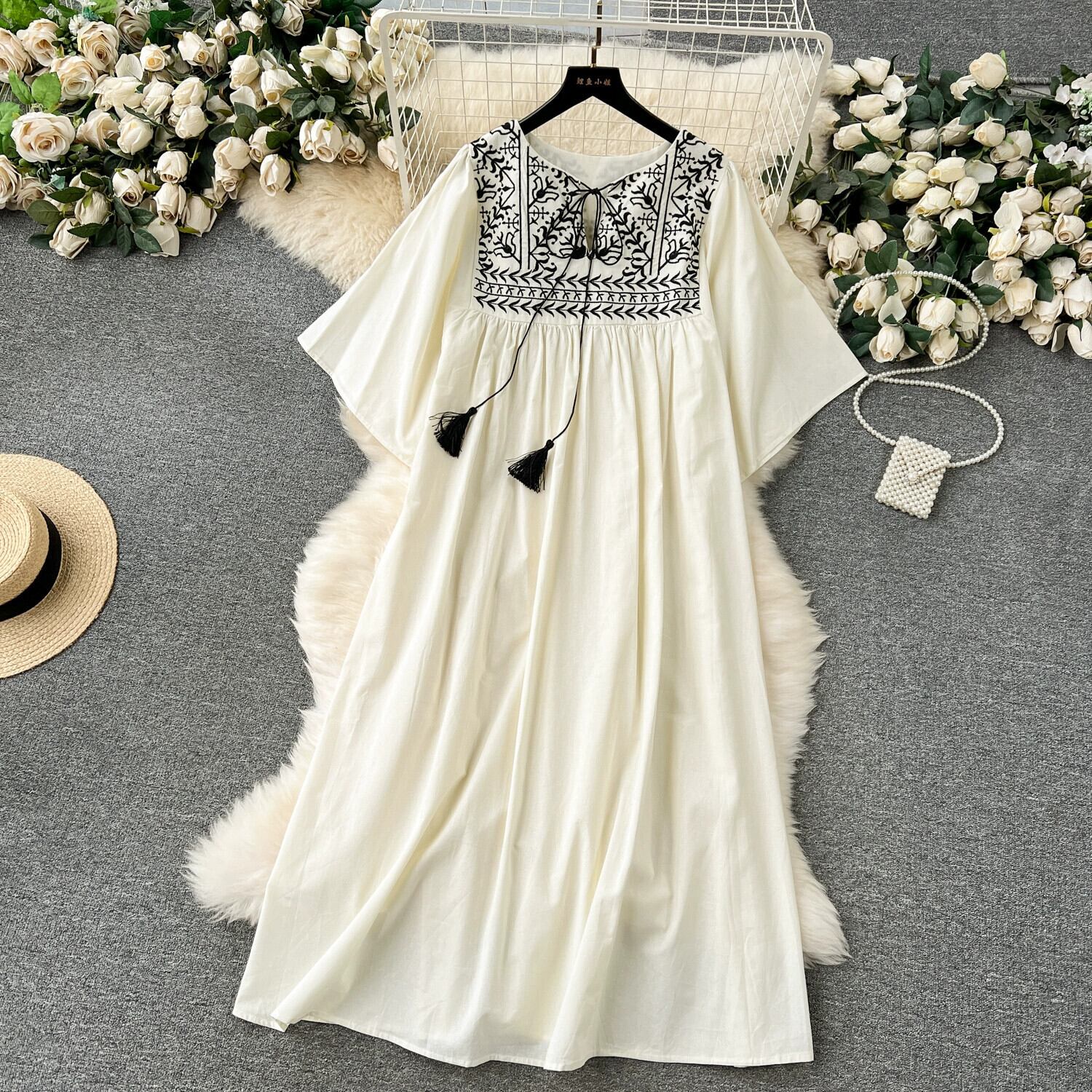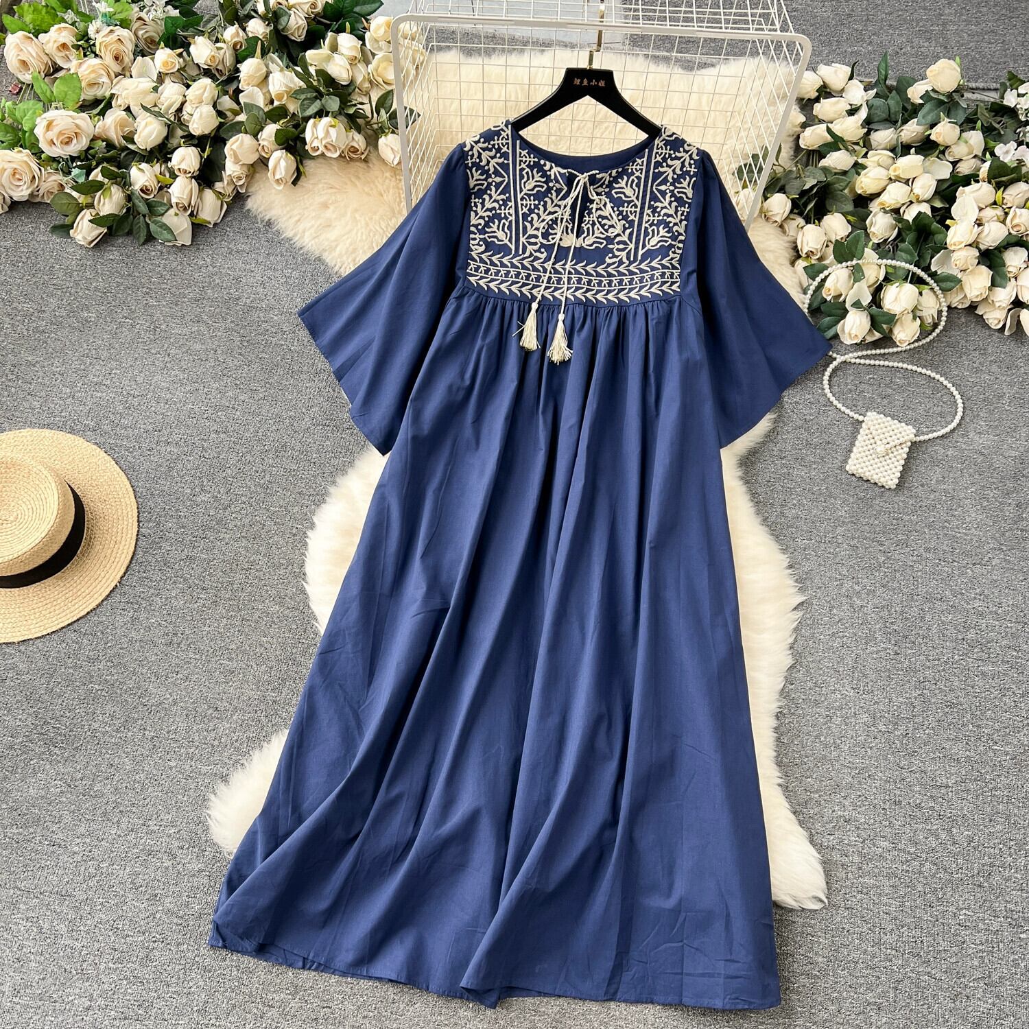 プラスサイズの女性の 2024 春レトロヘビー刺繍ロングルーズ腹カバースリム休暇ドレス 大きめサイズ スプリング 春物 lyxaj56919863835