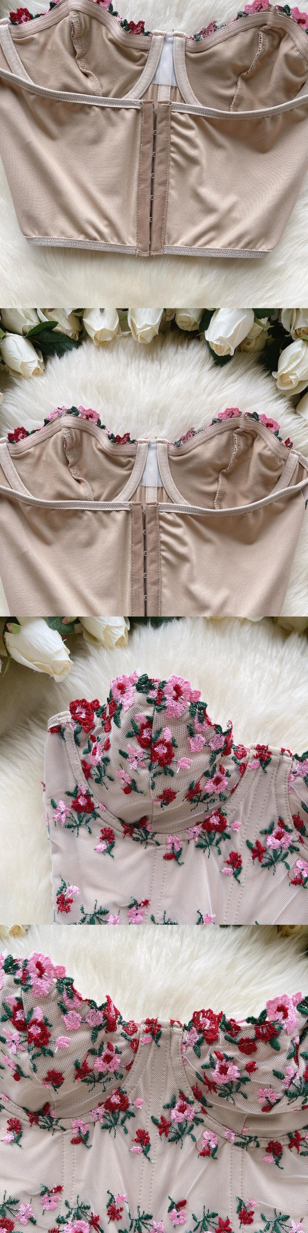 フレンチライト高級ニッチレトロ重工業刺繍チューブトップとレースボトシャツセクシーなショートへそトップ女性 レッド lyxaj53051994915