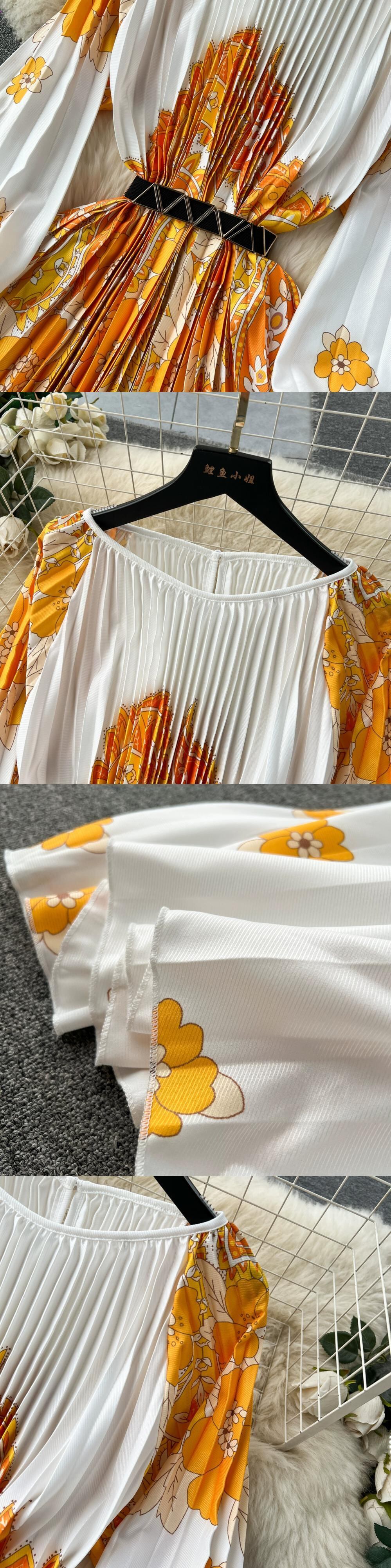 ヨーロッパとアメリカのスタイル 2024 新しい女性のドレスオーバーサイズスカートプリントプリーツプリーツウエストネクタイホリデーロングスカート ヨーロピアン lyxaj18089746911