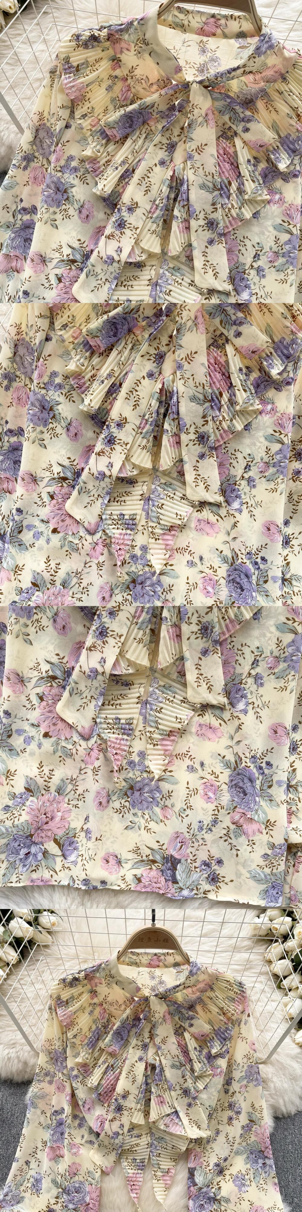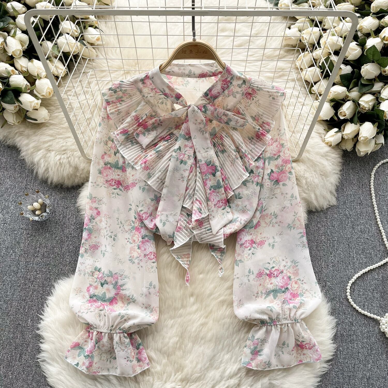 シフォン シャツ レディース スイート ボウタイ 丈夫 プリーツ フリル スリム フィット 多用途 フレンチ パフ スリーブ トップ 春 リボン 大人ガーリー スウィート キュート カジュアル スプリング 春物 lyxaj29800618661