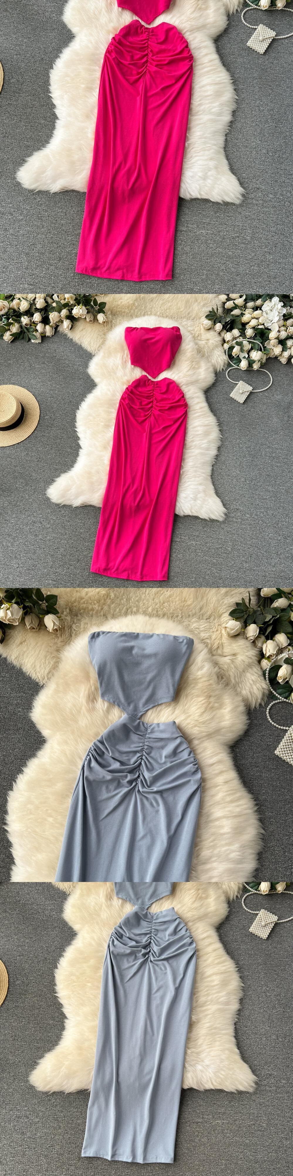 ヨーロッパとアメリカのスーツ、スタイルのチューブトップ、ショートで多用途なプリーツスリムスカート、ファッショナブルなツーピーススカートスーツ ヨーロピアン lyxaj13004559475