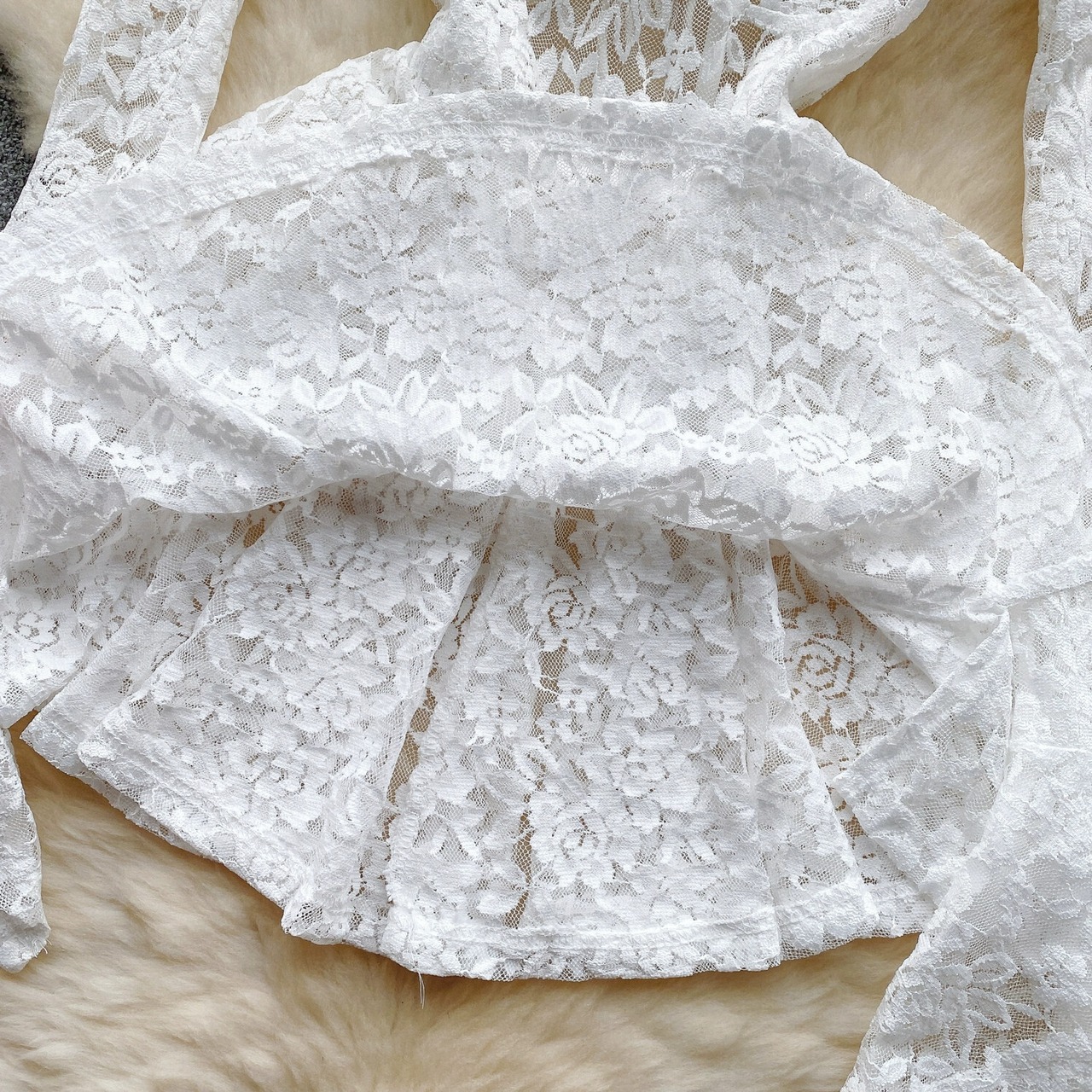 ライト高級ゴールドスタイルのハイエンドドレスの女性秋メッシュレース中空マイクロフレアスリーブデザインスーパーフェアリースカート オータム 秋物 lyxaj84969176983