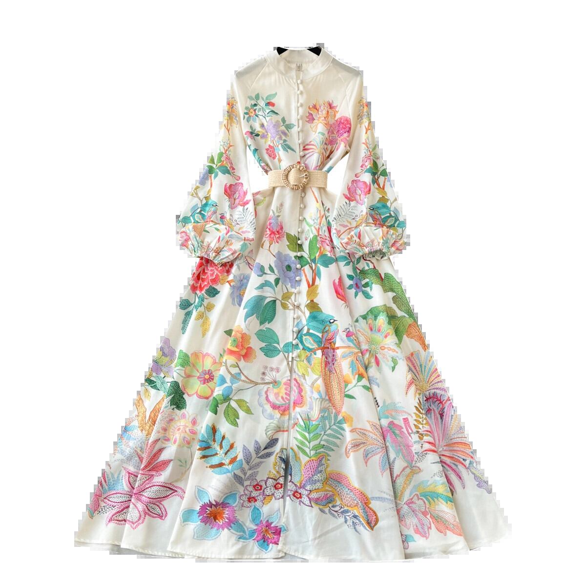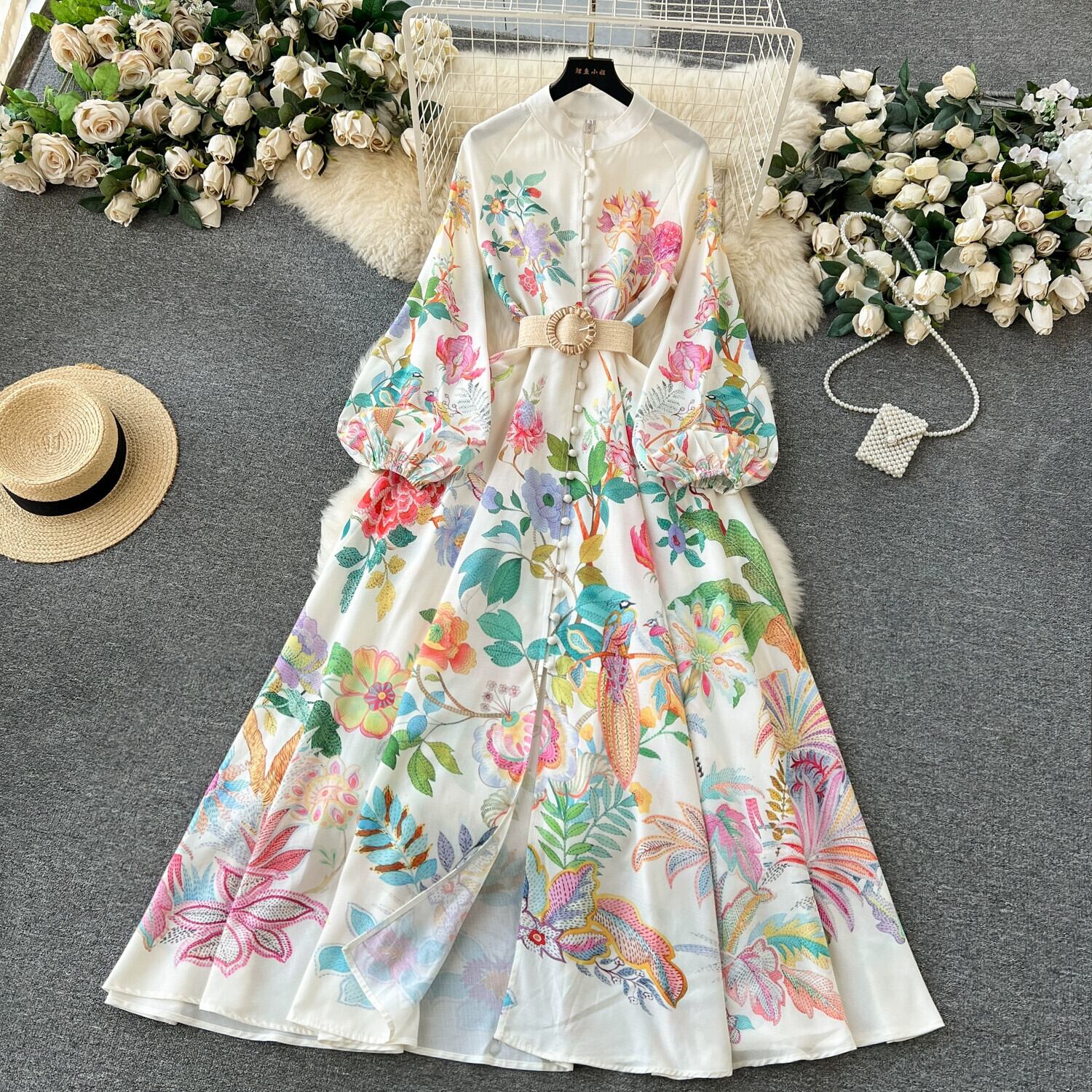 2024早春ニッチプリントブレストスリムロングフレンチパフスリーブドレス気質 スプリング 春物 lyxaj8902362226