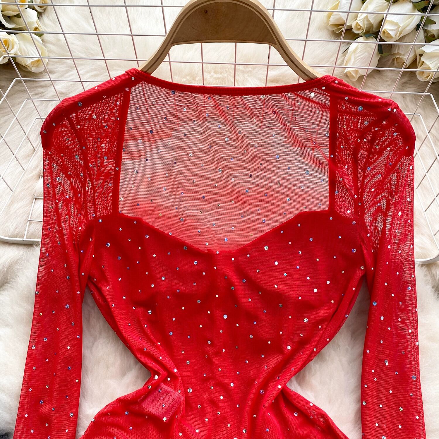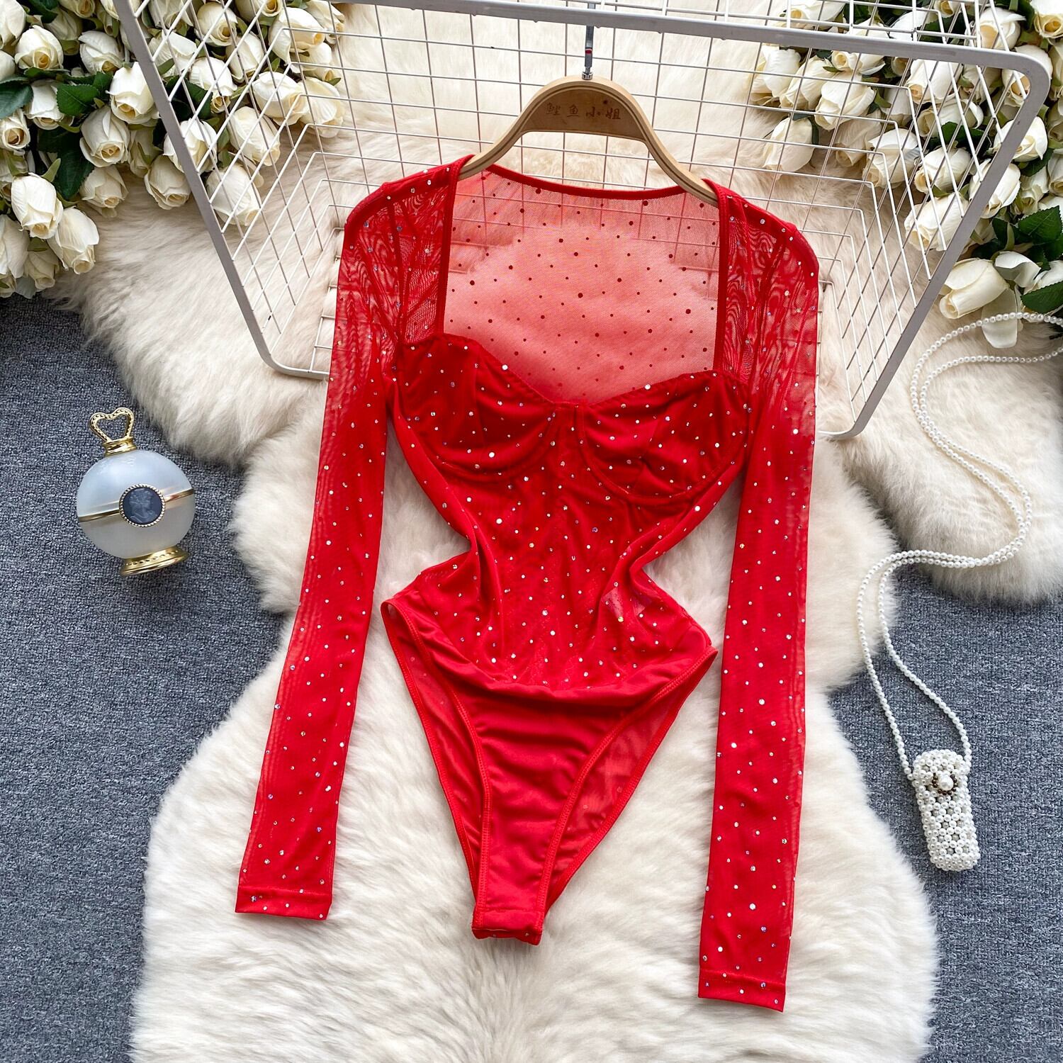 ヨーロッパとアメリカのジャンプスーツの女性 2024 春先の新ライト高級ダイヤモンド長袖スリムフィットインナーシースルーメッシュジャンプスーツ ロング スプリング 春物 ヨーロピアン lyxaj6460590005