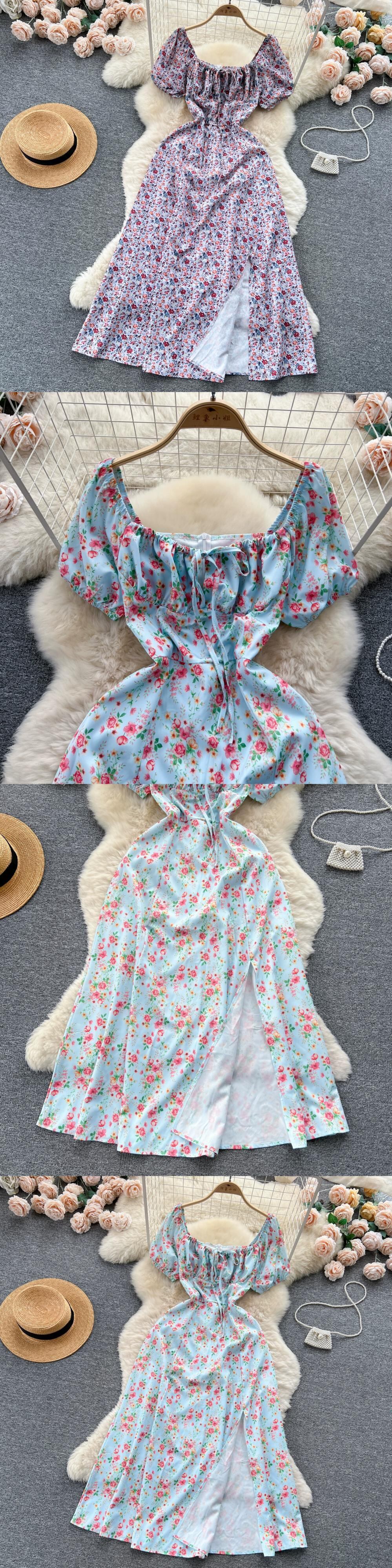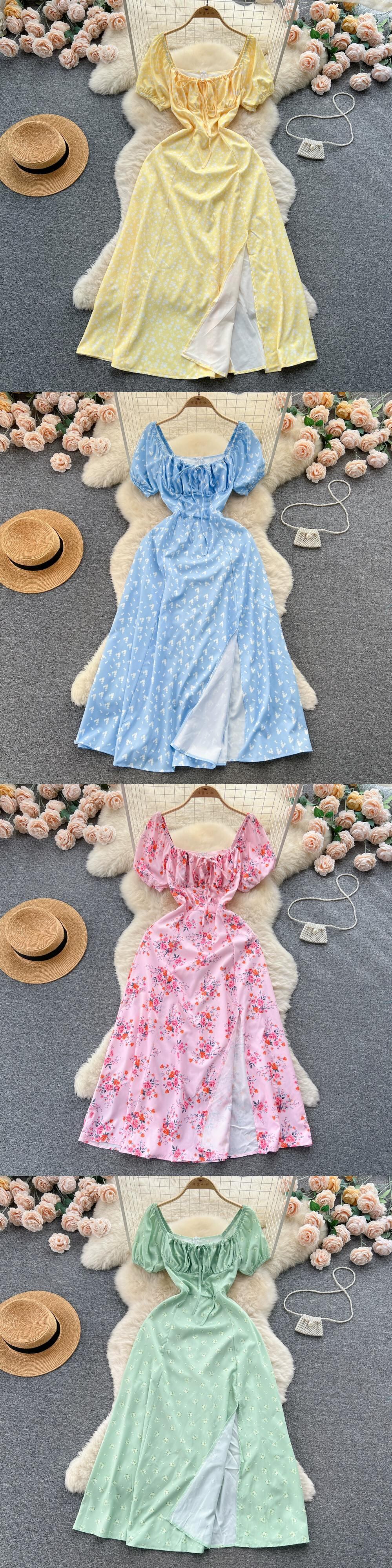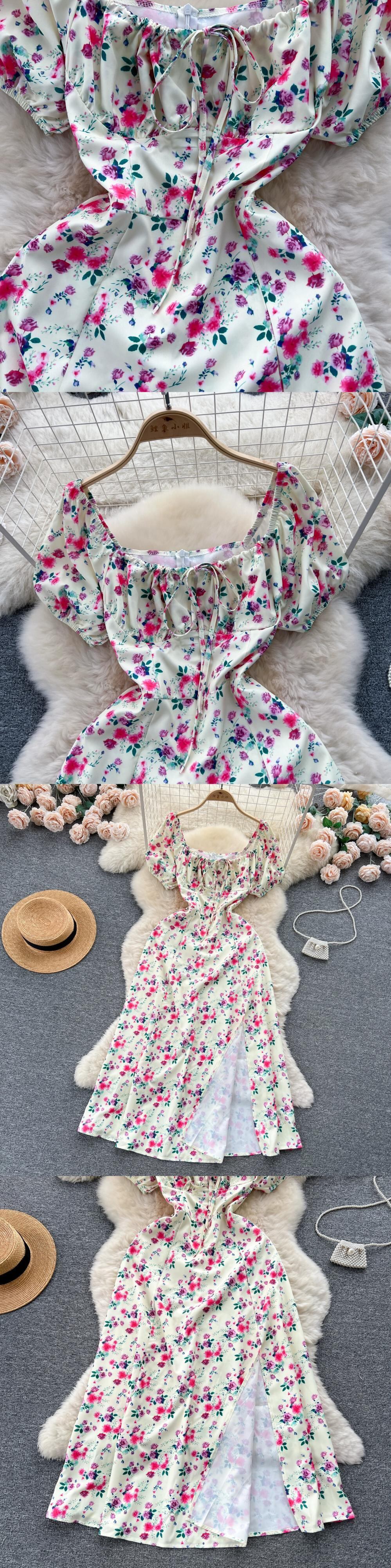 フレンチピュアディザイア エンドフラワーパフスリーブワンピース レディース 夏スリム&スーパーフェアリースタイル スリットロングスカート サマー 夏物 花柄 lyxaj510760604