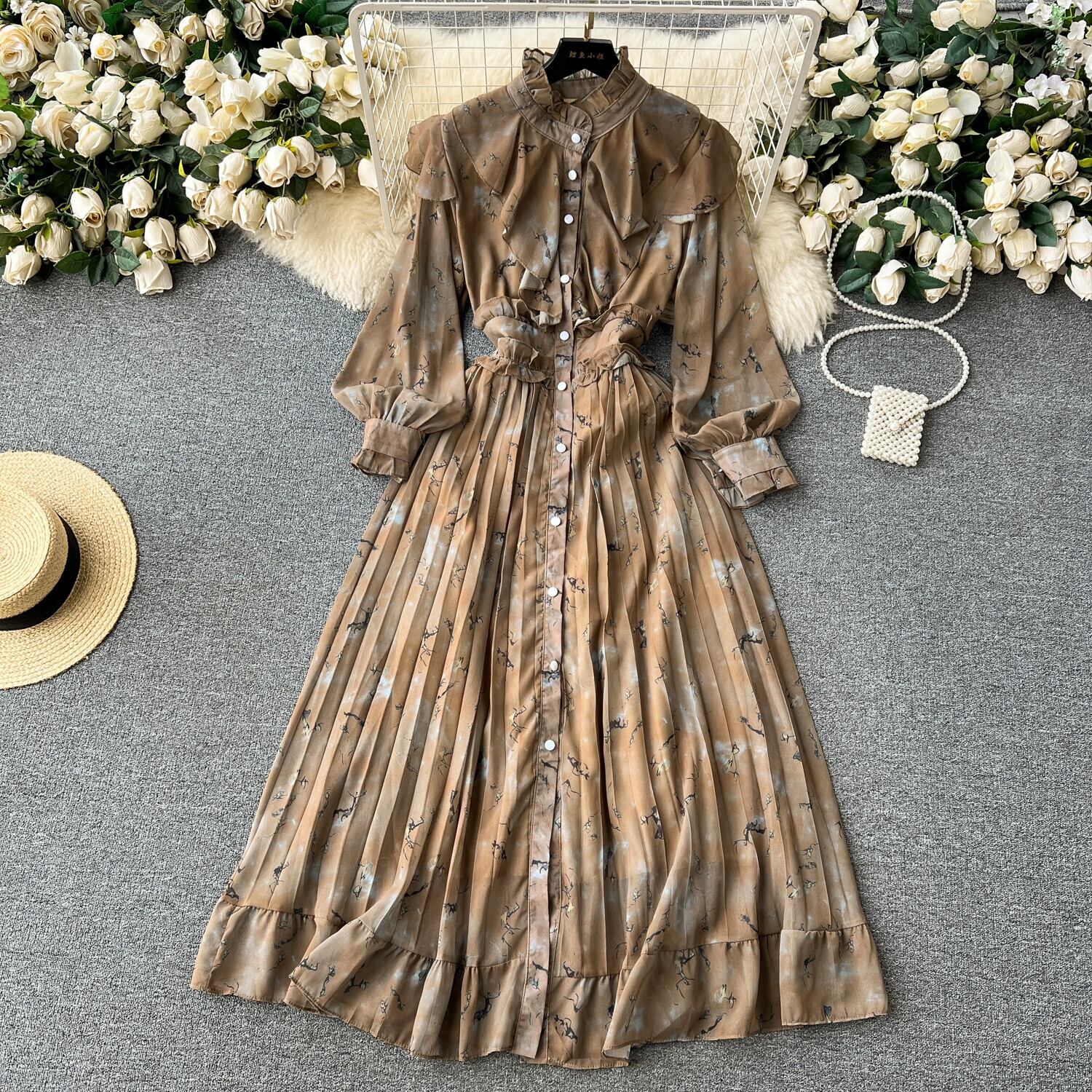 パレス スタイル ドレス レディース 秋 甘い フリル スリム ロング プリント プリーツ シフォン ホリデー スカート レース 大人ガーリー スウィート キュート カジュアル オータム 秋物 lyxaj46693063030