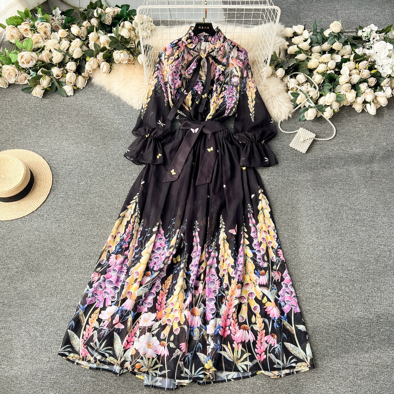 フレンチレディ風高級スーツ、レディースシフォンシャツ、万能ロングスカート、トレンドプリントツーピースセット lyxaj6432771142