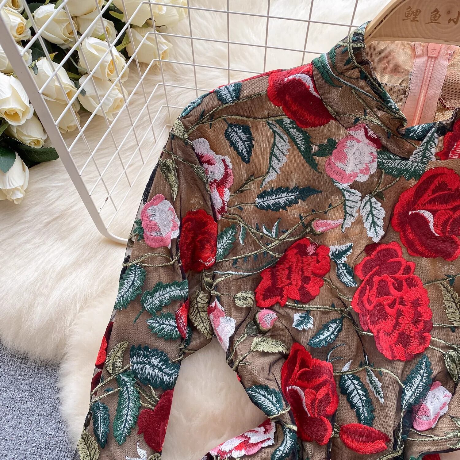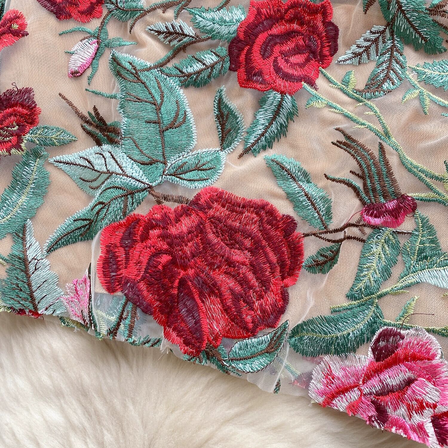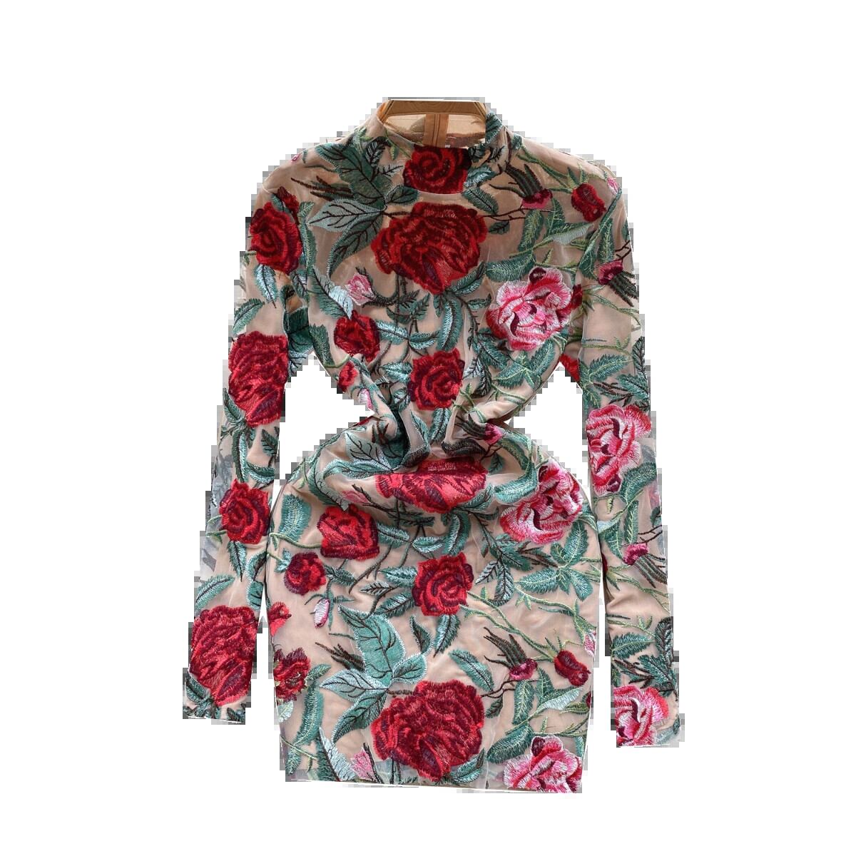 宮殿スタイルのレトロな重工業刺繍ドレスハイエンドライト高級ニッチ気質スタンドカラースリムショート刺繍ドレス レッド レース lyxaj94004248611