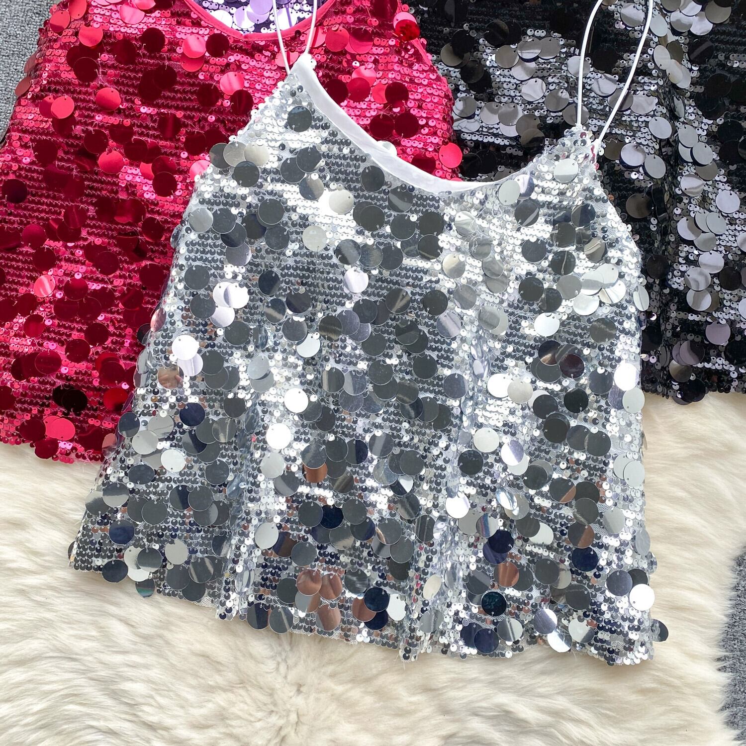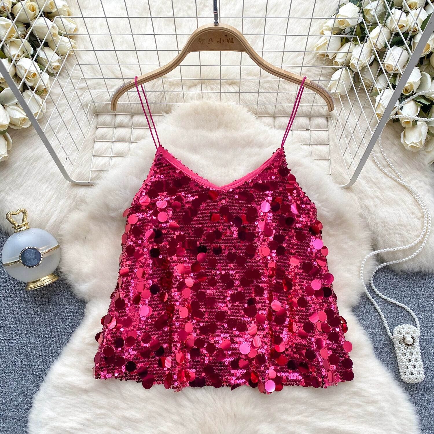 -エンドスパンコールキャミソールレディース、年齢軽減、多用途でファッショナブルなアウターウェア、ゆったり、痩身、軽い贅沢、レディスタイルのトップトレンド lyxaj21059454649