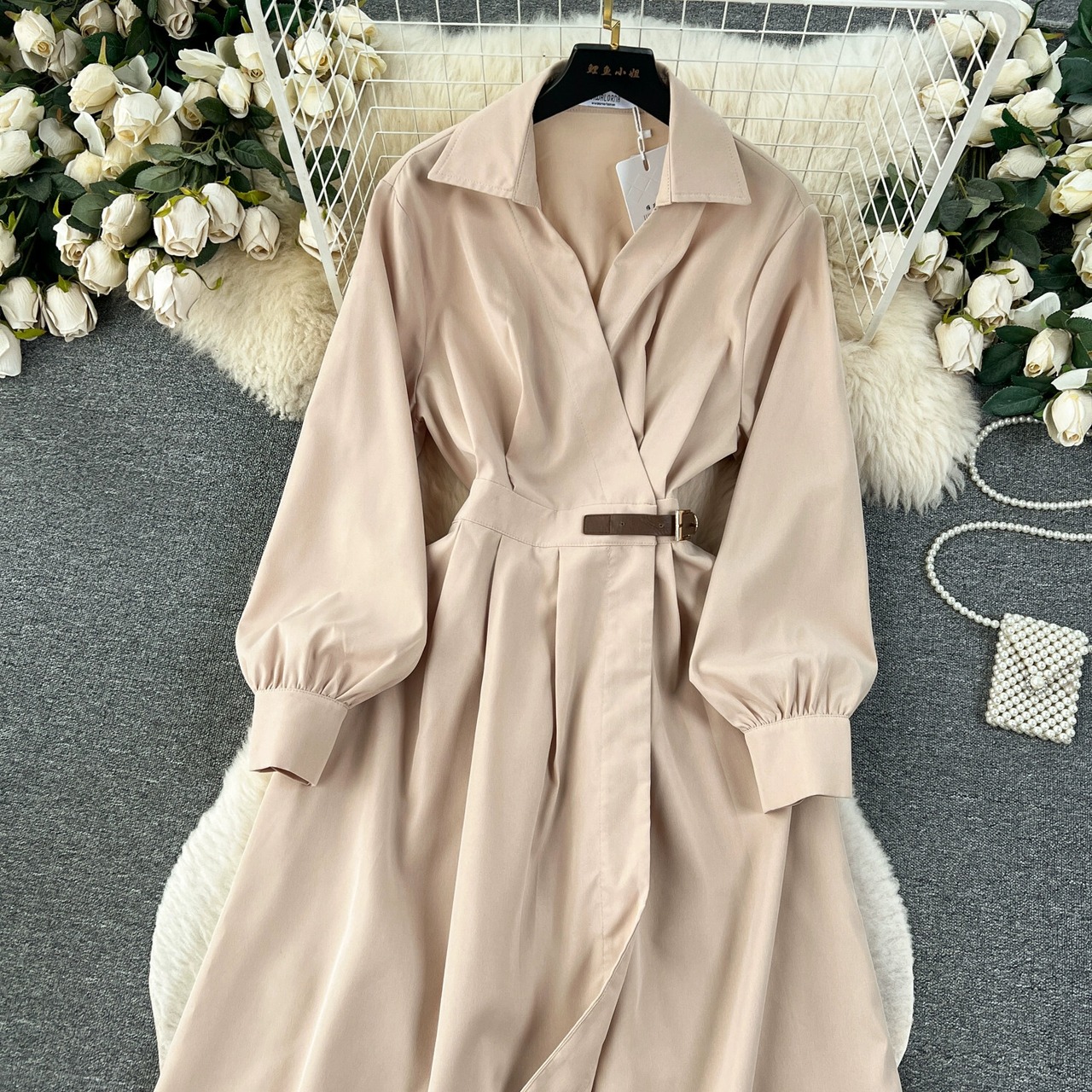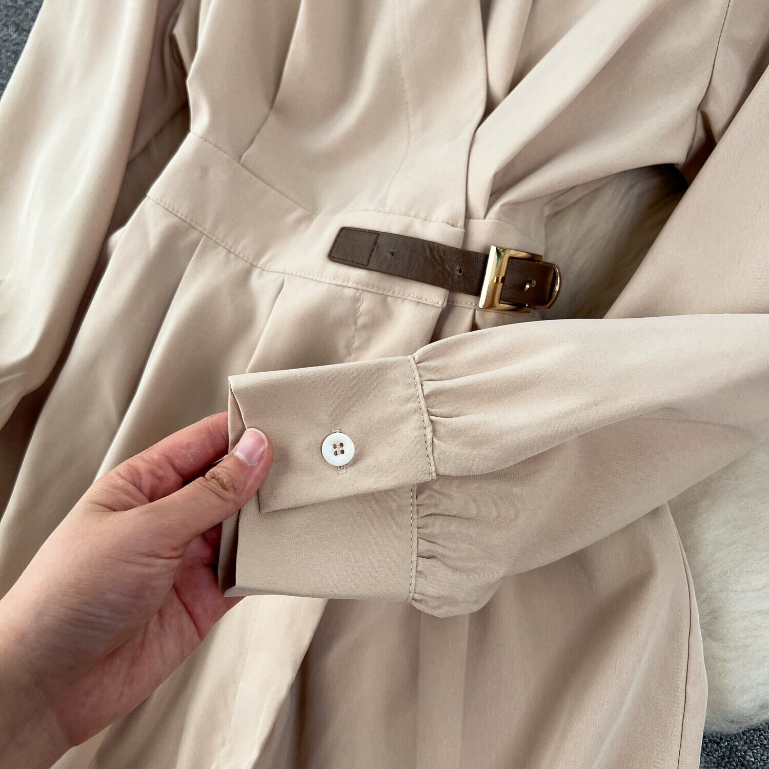 ミドル丈のドレスの女性、ハイエンドの気質、エレガントなラペルのウインドブレーカー、ジャケットの女性、ニッチウエストのワークウェアスカート lyxaj2517199152