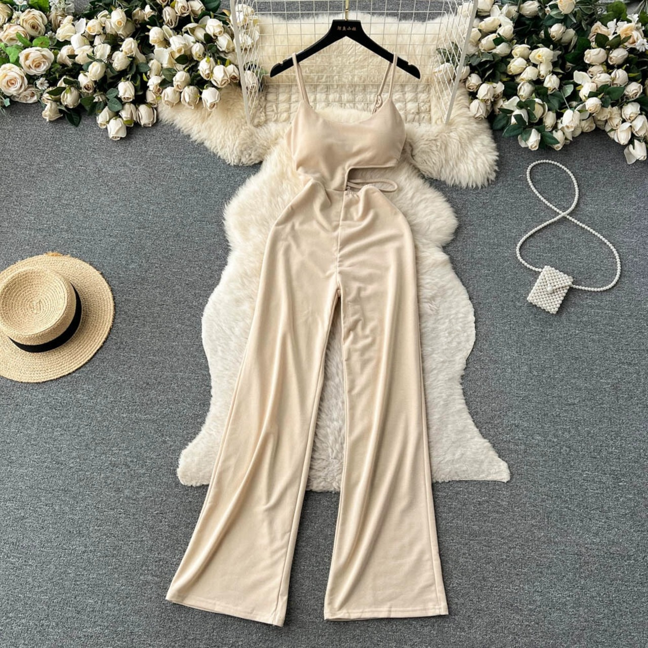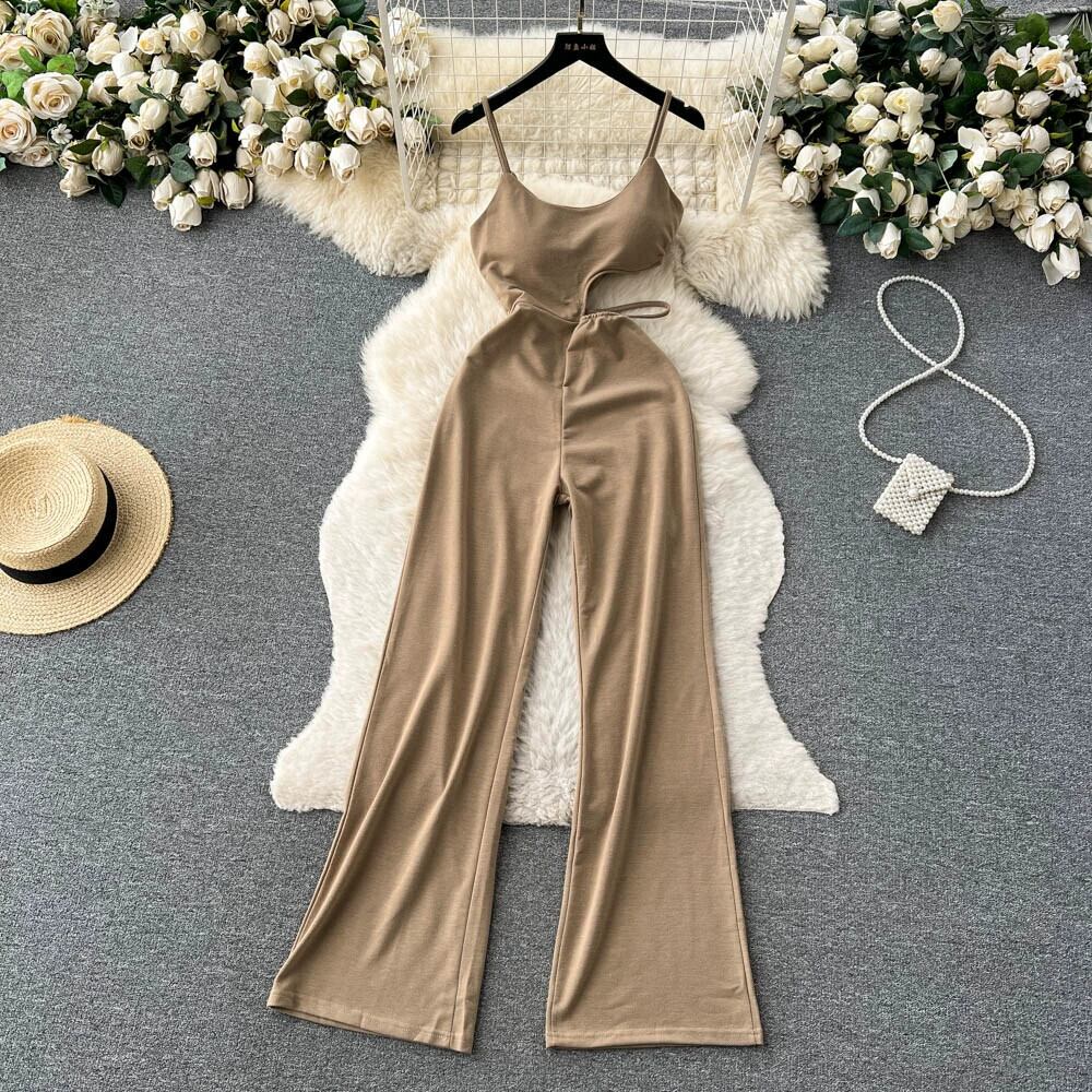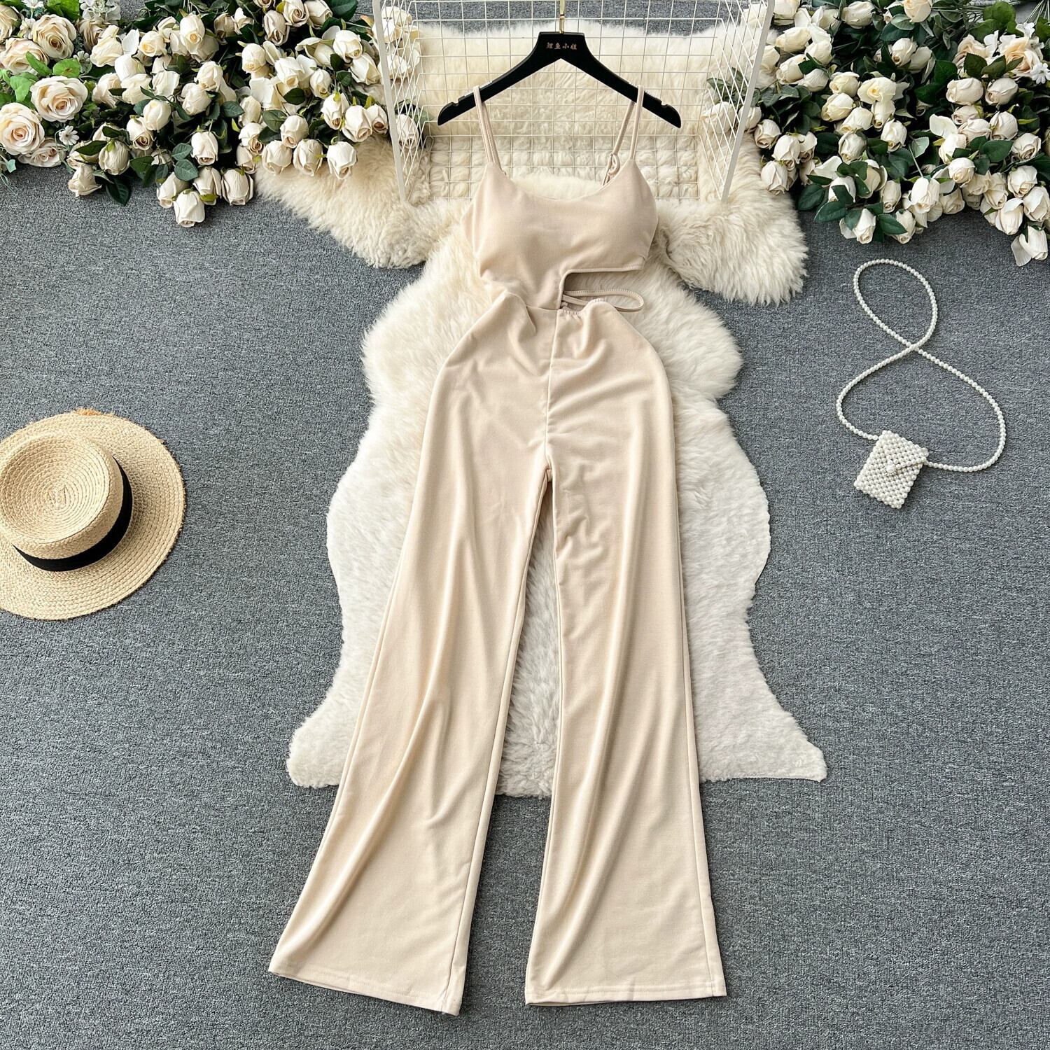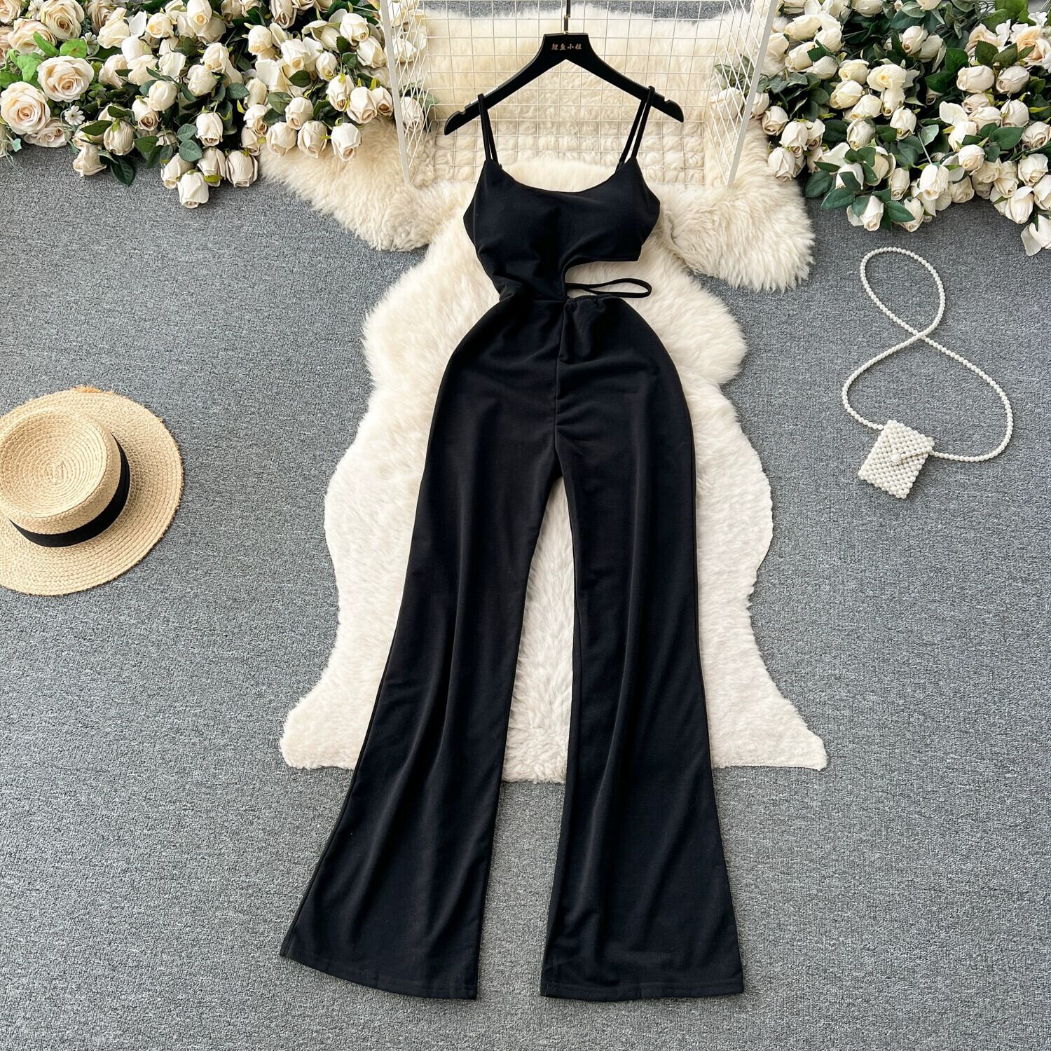 ヨーロッパとアメリカのスタイルのセクシーなネクタイ露出ウエストデザインサスペンダージャンプスーツ女性の夏のウエストタイトなチューブトップワイドレッグジャンプスーツトレンディな サマー 夏物 ワイドパンツ ヨーロピアン lyxaj72427363511