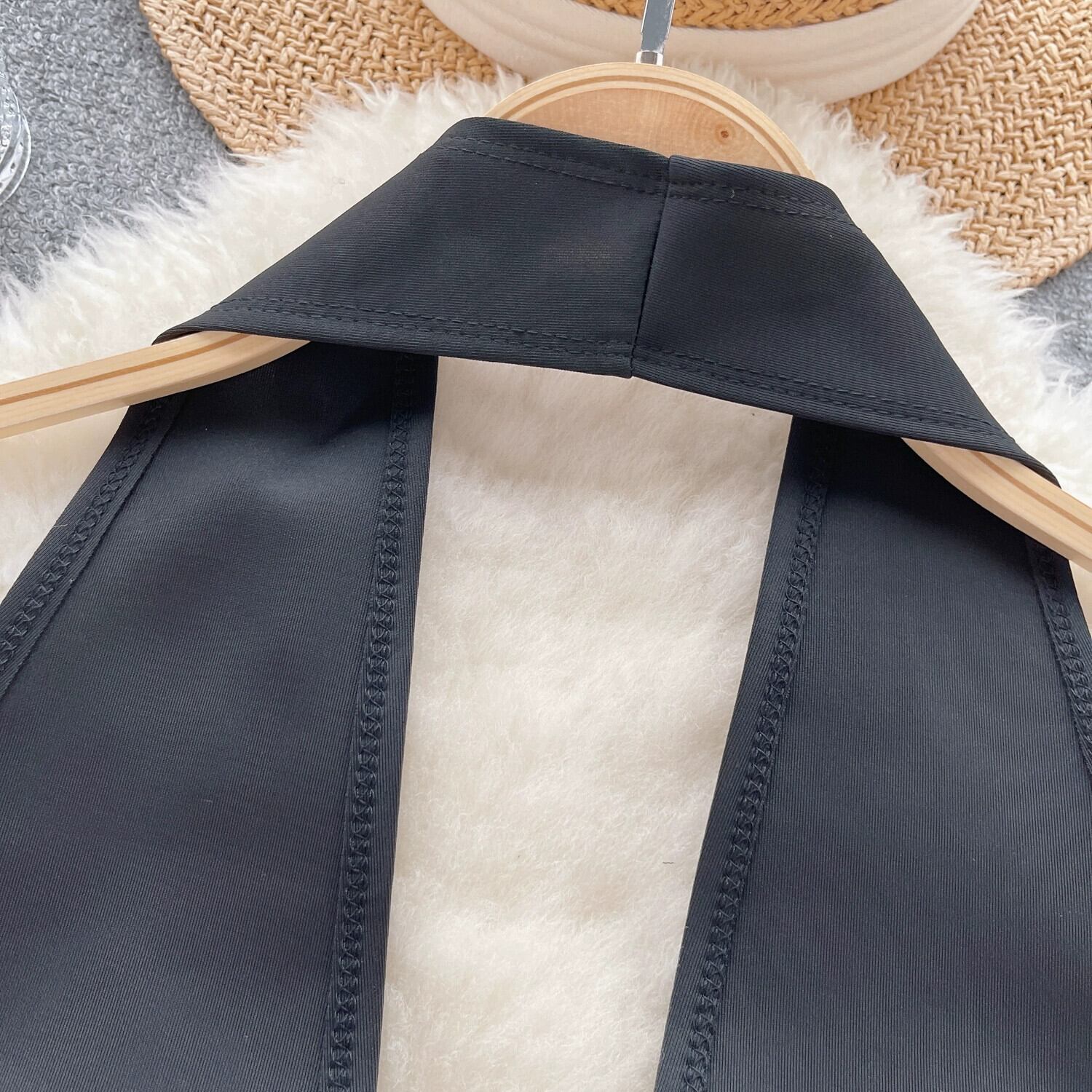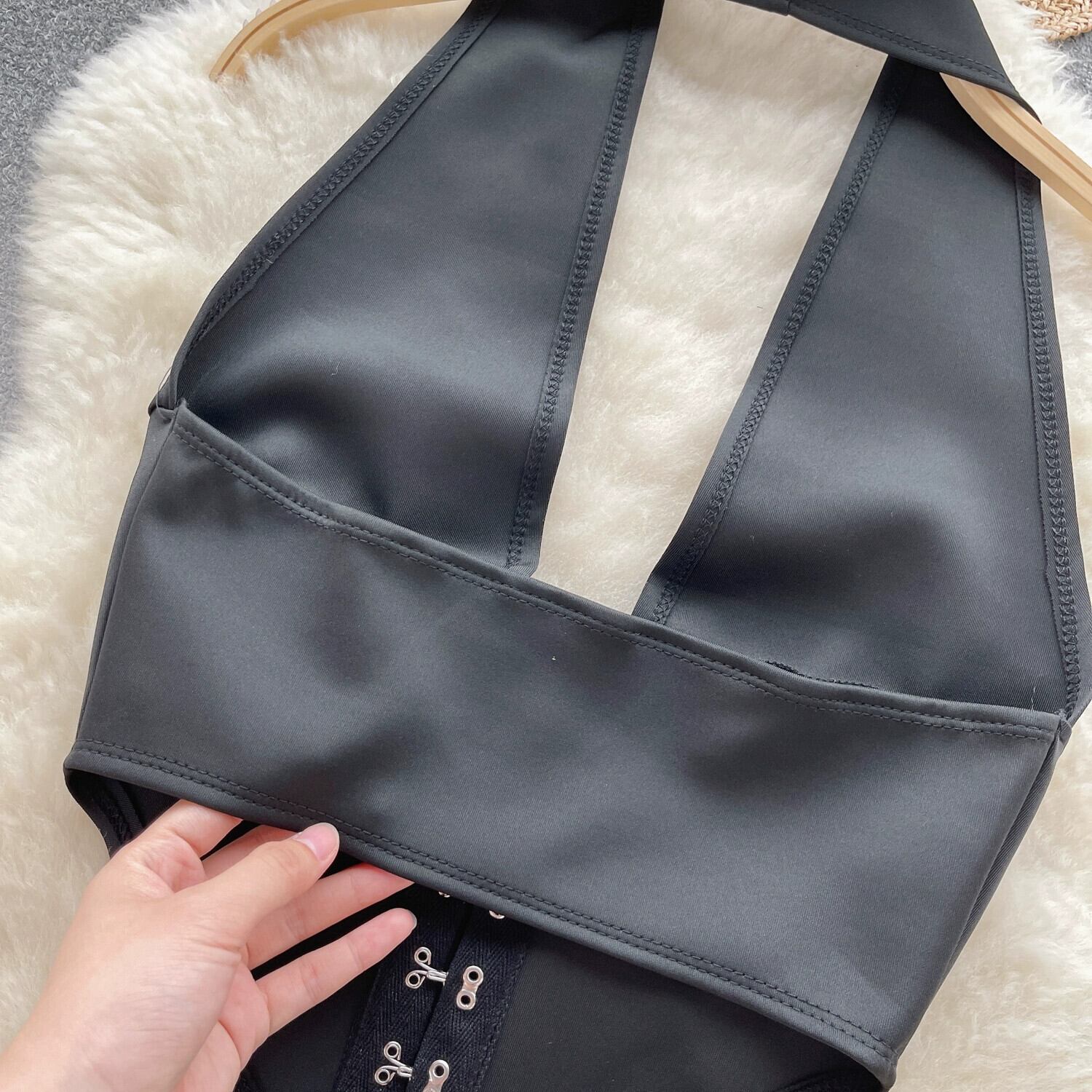 2023 夏スタイル純粋な欲望ホットガールホルターベストスリムスリムシングルブレストノースリーブショートトップトレンディ サマー 夏物 ピュア lyxaj2175056685