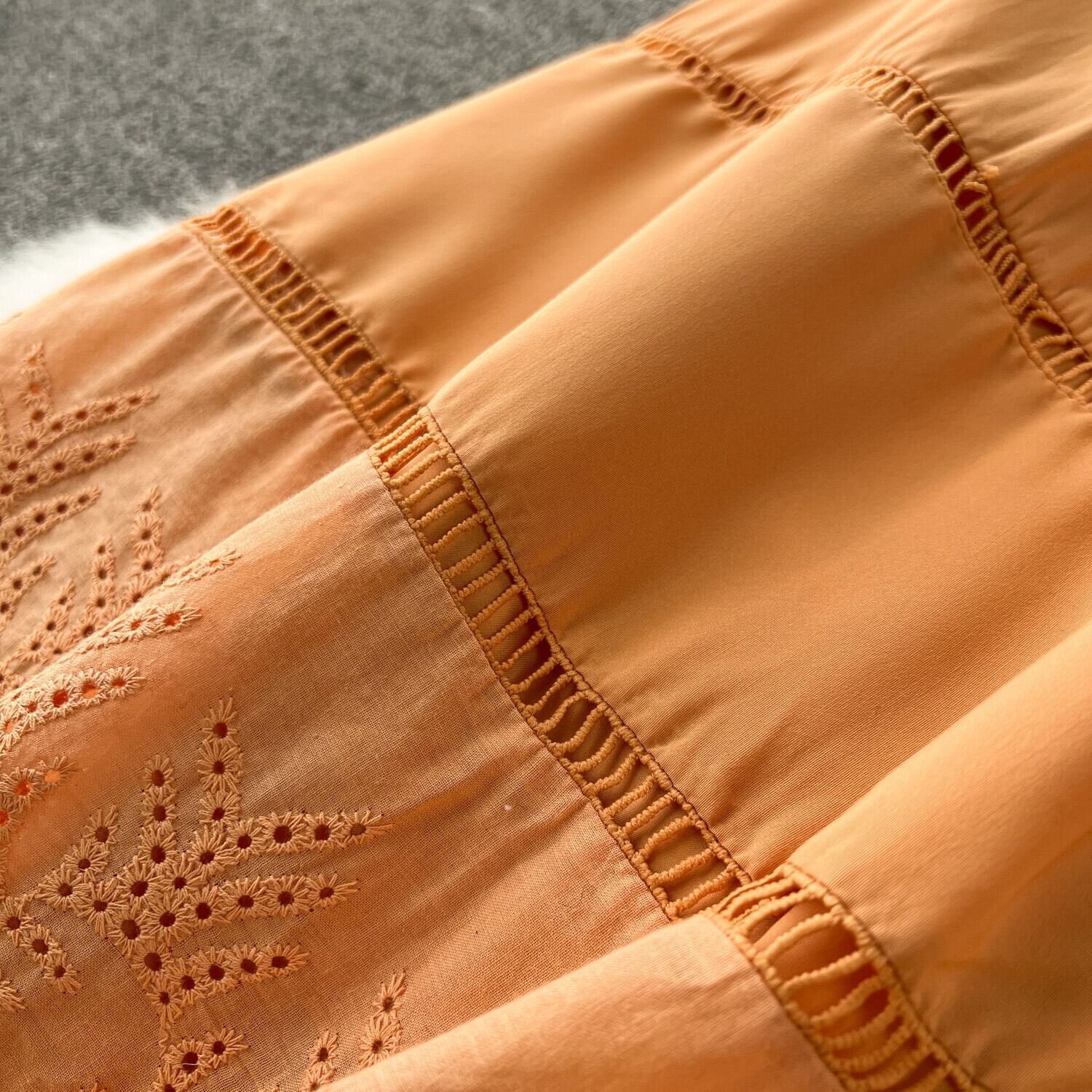 甘くて優しいスタイルのランタンスリーブドレスレディースフレンチ中空刺繍ウエストフェアリーロングスカート 大人ガーリー スウィート キュート カジュアル lyxaj85940505521