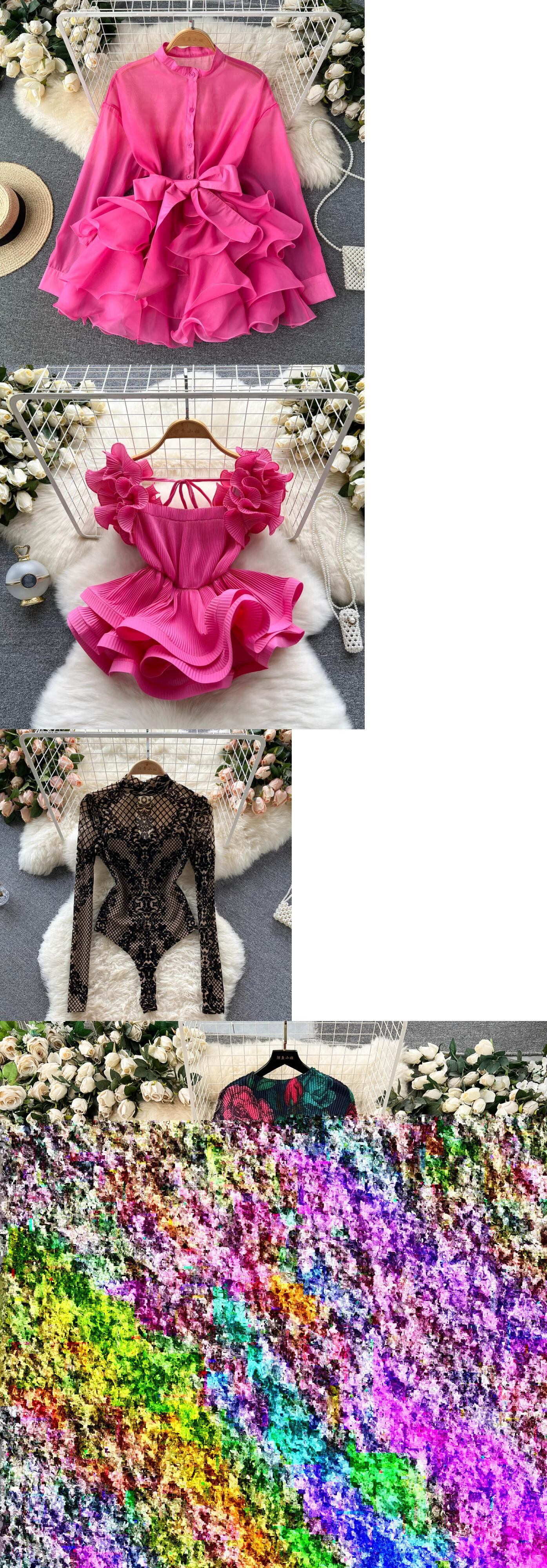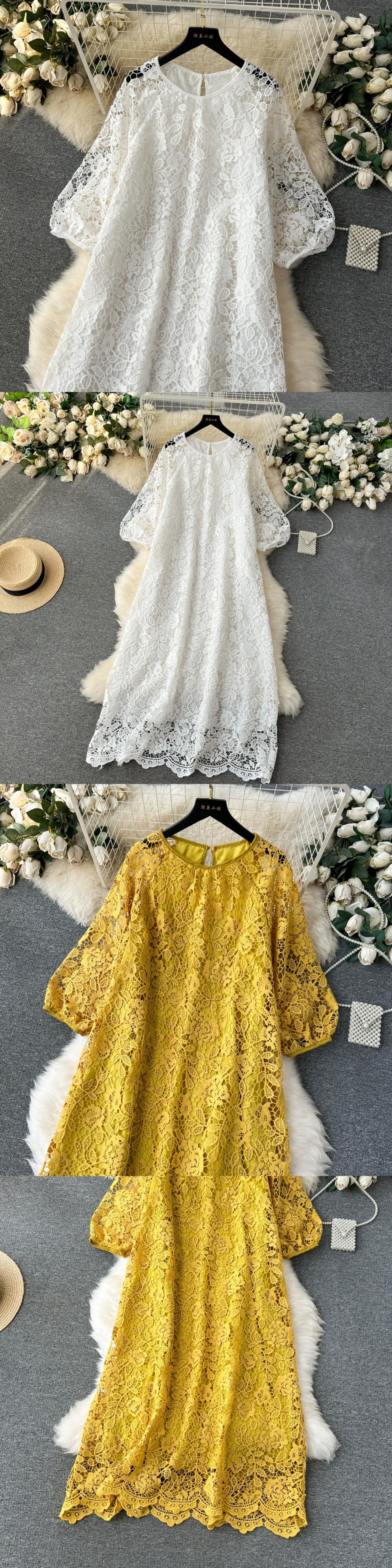 甘いレースのドレスの女性 2023 新スタイルフレンチレトロ重工業中空かぎ針編みルーズスリムドレスロングスカート 大人ガーリー スウィート キュート カジュアル lyxaj16910728080