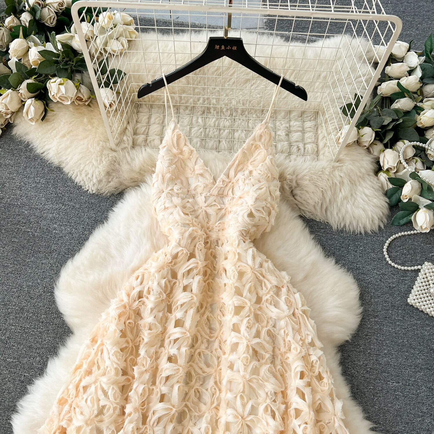 フレンチジェントルスタイルセレブハイエンドニッチドレスデザイン中空立体フラワースリムロングホリデードレス フラワーデザイン lyxaj9529915267