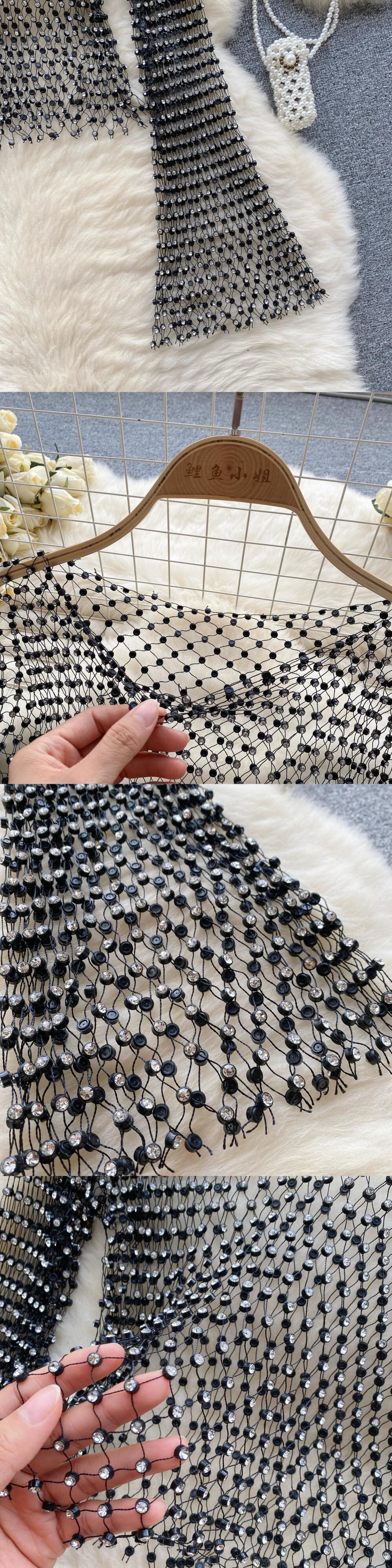 ヨーロッパとアメリカの摩耗トップス女性秋 2023 新しい重工業ダイヤモンド中空ブラウストランペットスリーブ長袖 tシャツ ロング オータム 秋物 ヨーロピアン lyxaj60535732219