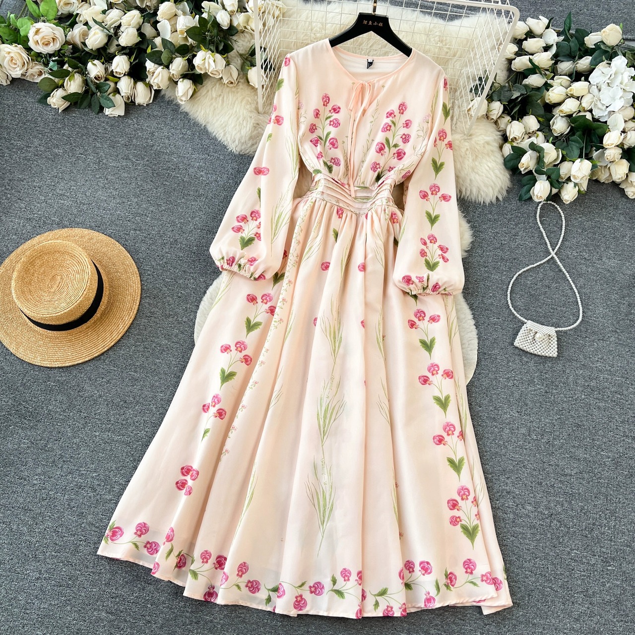 高貴な気質の長袖ポジショニングプリントウエストレングスドレス、ワイドスイング女性、ハイエンドスリミングレトロフレンチロングスカート lyxaj94220552491