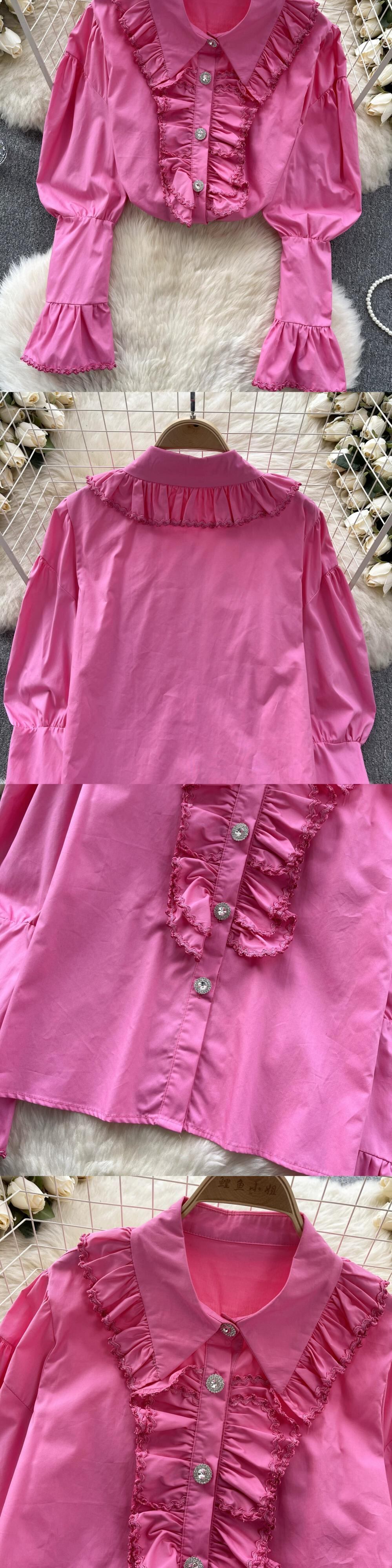 2024 早春トップス甘いフリルスリムフィット多用途パフスリーブシャツ女性のシャツトレンディ 大人ガーリー スウィート キュート カジュアル スプリング 春物 lyxaj76860688409