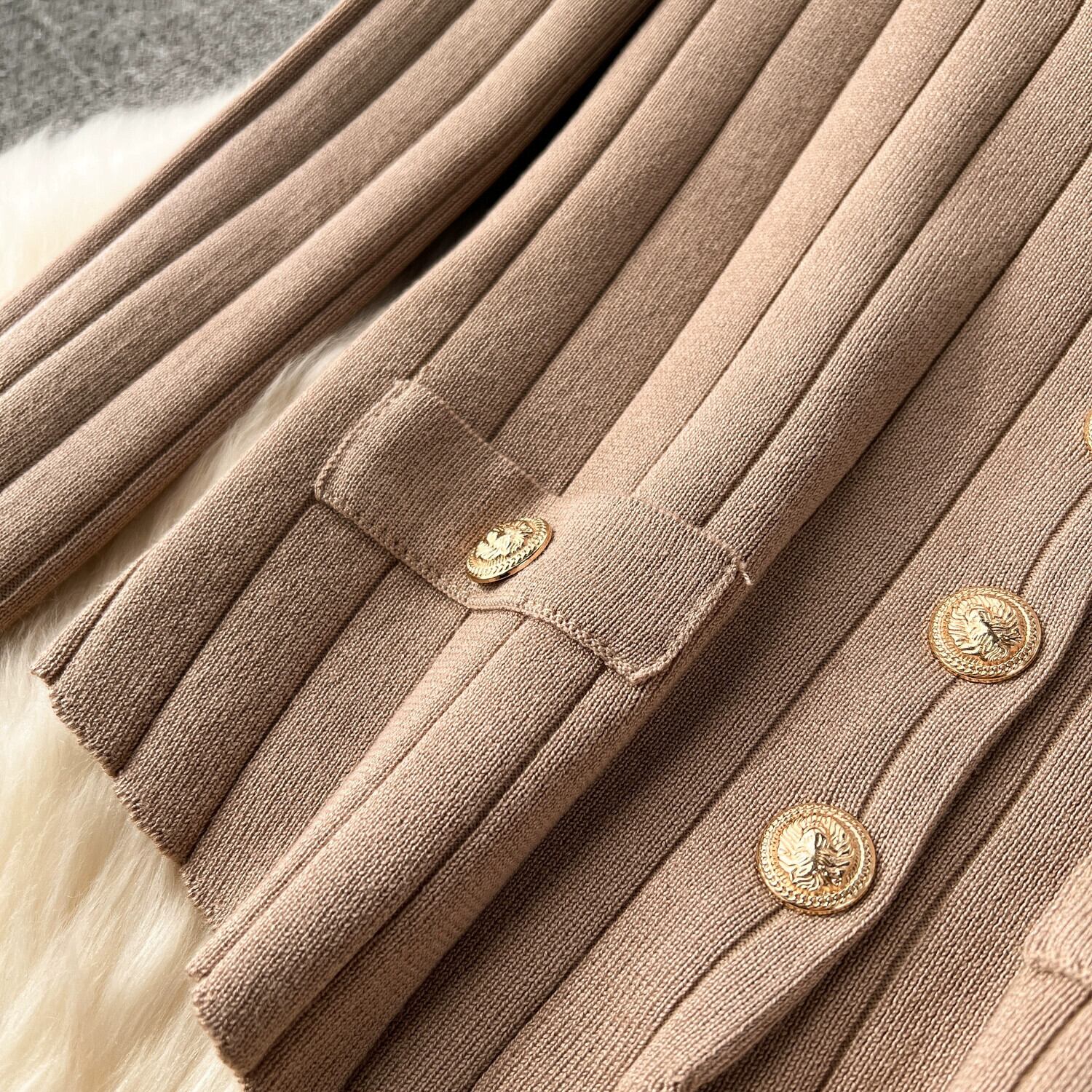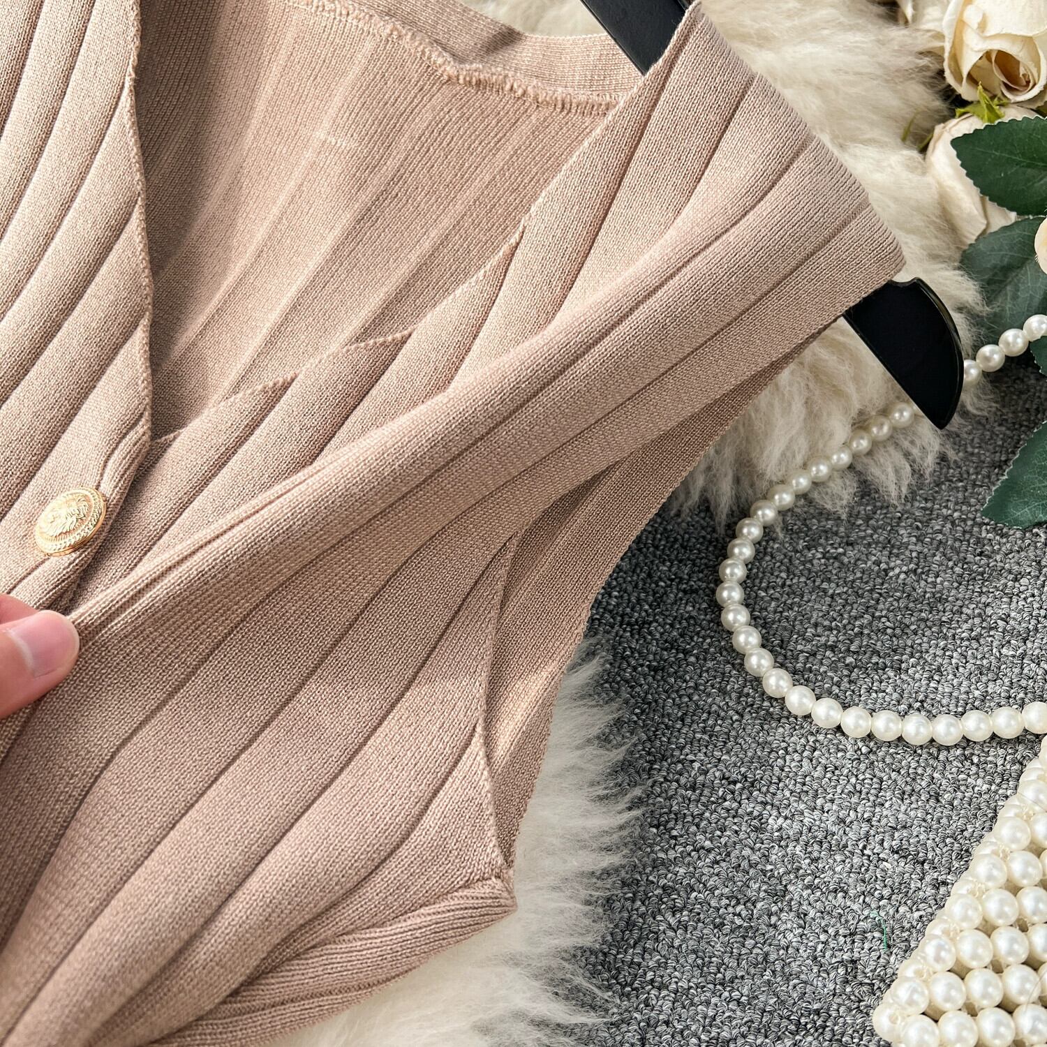 -エンドスーツ 2024 春 レディース メタルバックルベスト 万能ニットカーディガン ワイドパンツ ファッション 3点セット スプリング 春物 lyxaj206298021
