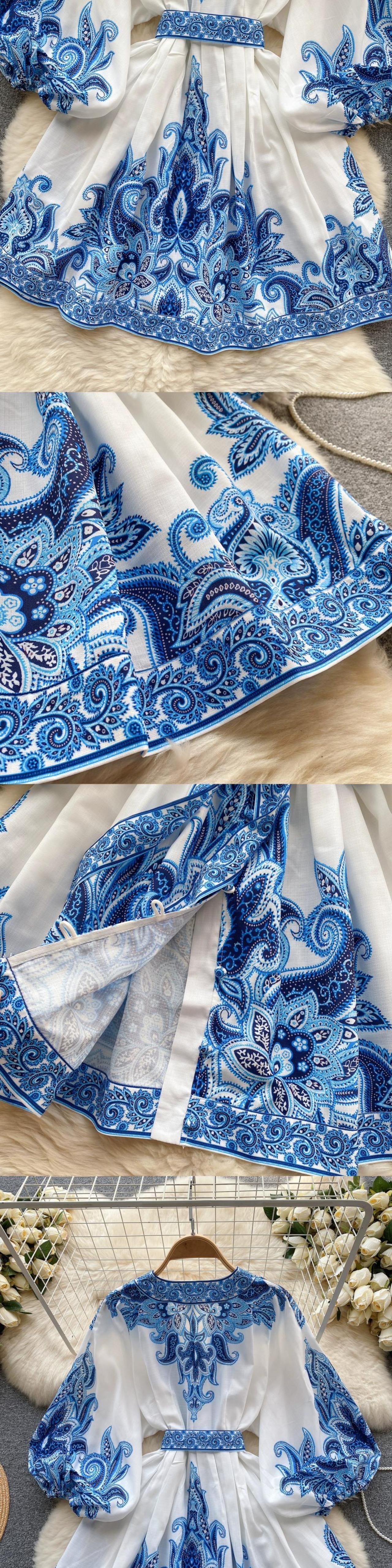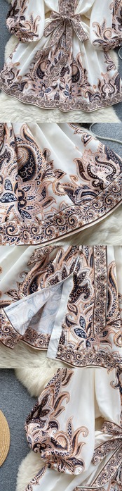 - 秋のヨーロッパとアメリカの気質のドレスの女性は軽くて成熟したスタイルのランタンスリーブウエストスリムプリントショートスカート オータム 秋物 ヨーロピアン lyxaj16224669848