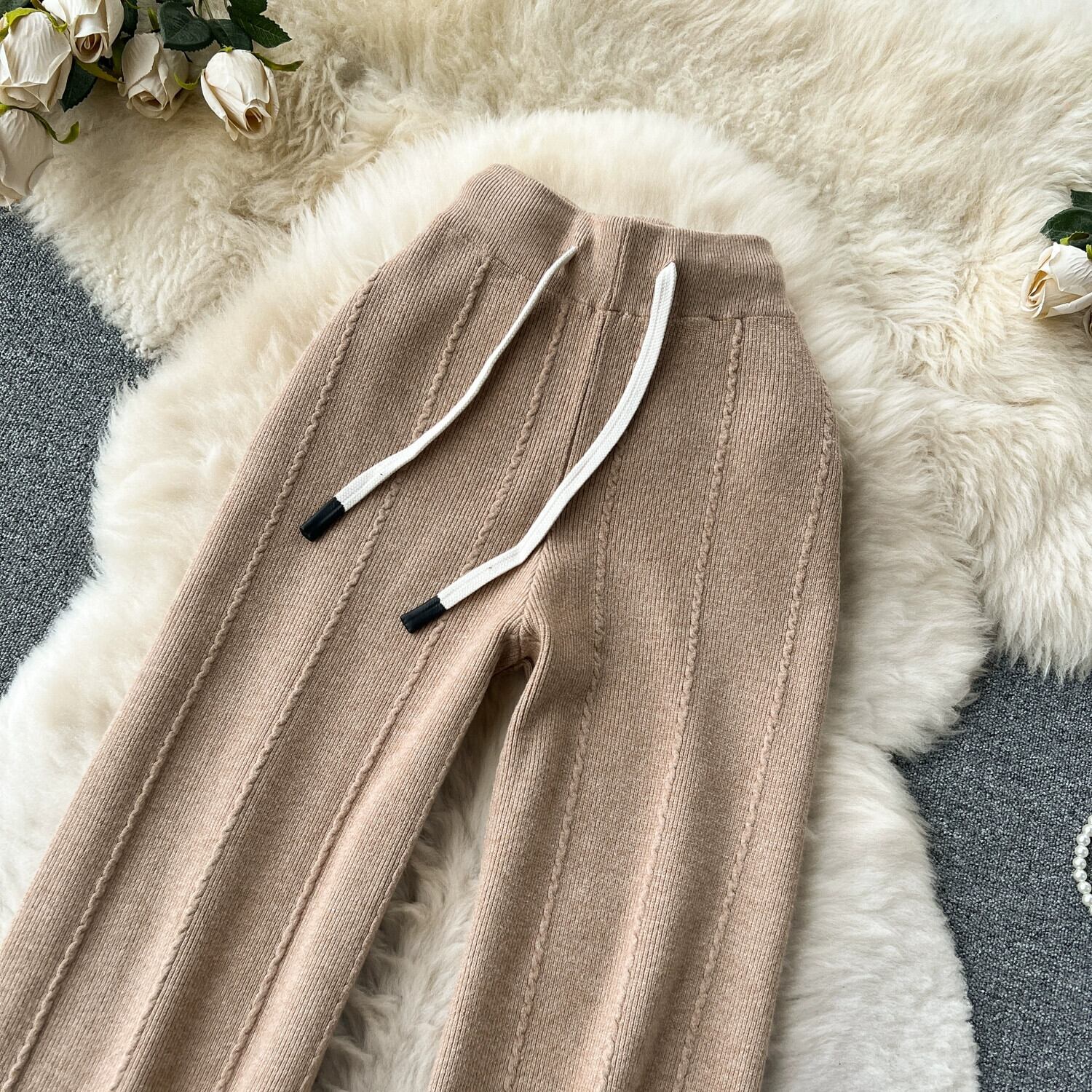 ライトラグジュアリーレディスタイルハイエンドカジュアルパンツ秋冬ソリッドカラー縦ストレートワイドレッグデザインニッチ気質パンツ オータム 秋物 ウィンター 冬物 ワイドパンツ lyxaj87249180011